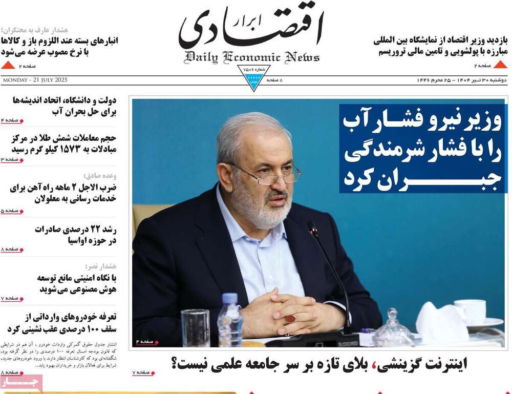 عکس / دکه مطبوعات ۳۰ تیر ۱۴۰۴ - ۰۷:۲۳ کد مطلب: 1279228 لینک کوتاه دریافت تصاویر صفحه اول روزنامههای دوشنبه ۳۰ تیر برچسبها روزنامههای صبح امروز عناوین روزنامه ها تیتر روزنامه ها روزنامه های صبح