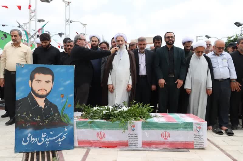 نماینده ولی فقیه مازندران بر پیکر اسوه صبر و استقامت حاجیه خانم فاطمه نیکدوز مادر شهید والامقام سردار سیدعلی دوامی نماز اقامه کردند