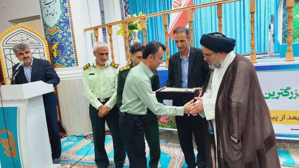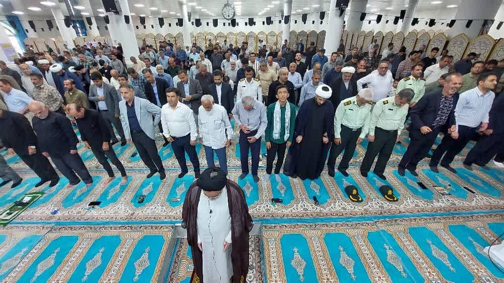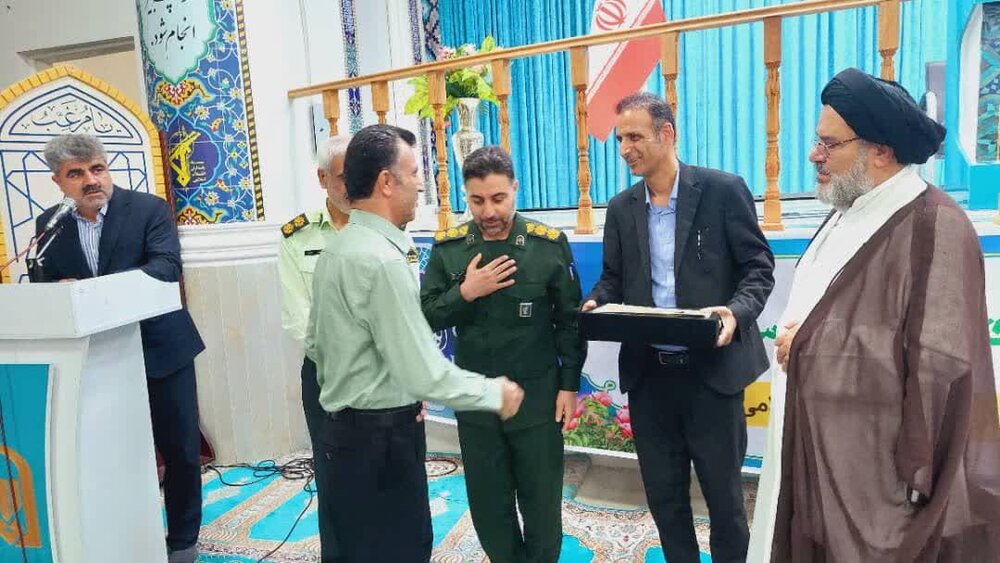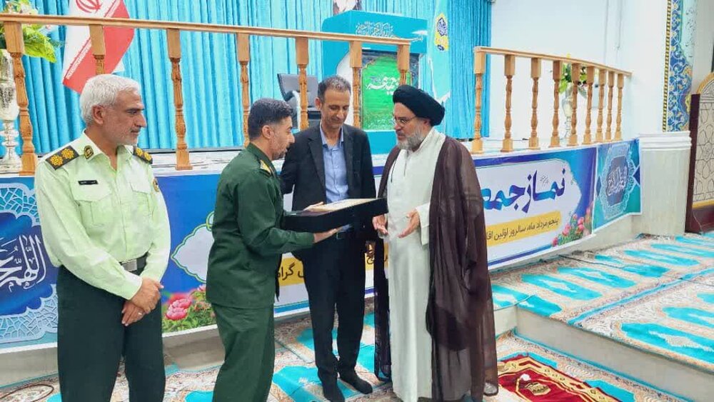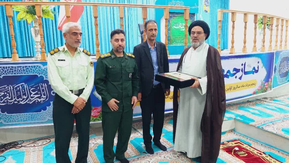حوزه/ نمازجمعه امروز شهر جمع در مصلای این شهر اقامه و از خادمان نماز به مناسبت ۵ مرداد سالروز اقامه اولین نمازجمعه بعداز انقلاب اسلامی در نماز جمعه امروز تقدیر بعمل آمد.