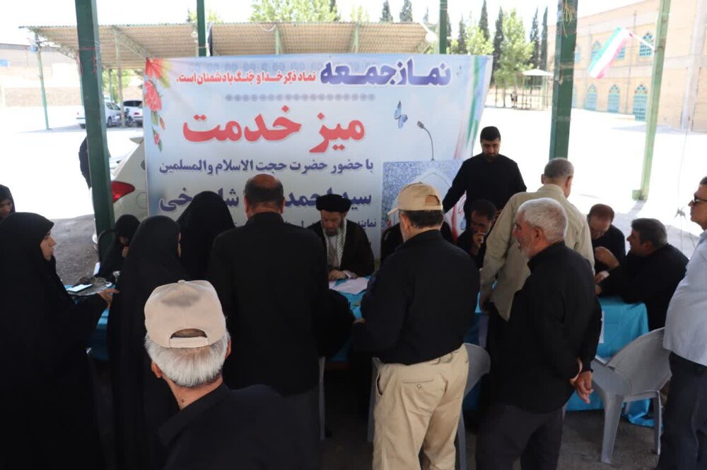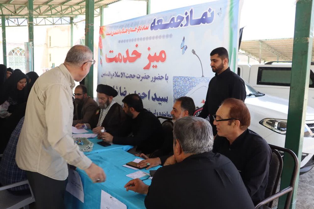 حوزه/ به مناسبت ۵ مرداد سالروز اقامه اولین نماز جمعه بعد از انقلاب اسلامی، میز خدمت امروز با حضور حجت‌الاسلام والمسلمین سید احمد رضا شاهرخی نماینده ولی‌فقیه در لرستان و اعضای ستاد نماز جمعه خرم آباد در مصلای الغدیر برگزار شد.