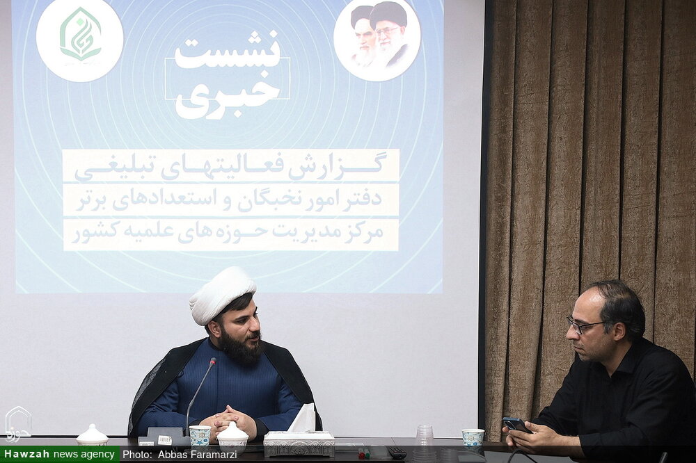 نشست خبری گزارش فعالیت های تبلیغی دفتر امور نخبگان و استعدادهای برتر مرکز مدیریت حوزه های علمیه در مرکز رسانه و فضای مجازی حوزه برگزارر شد.