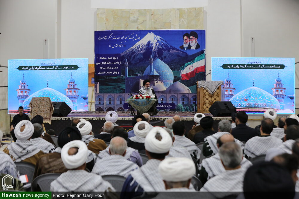 حوزه/ همایش بزرگ مسجد محور وحدت، سنگر مقاومت «اتحاد مقدس» با سخنرانی آیت الله سید احمد خاتمی عضو مجلس خبرگان و با حضور نماینده ولیفقیه و امام جمعه اصفهان، مسئولین و ائمه جماعات، فرماندهان پایگاه های بسیج و هیأت امنای مساجد و ارکان محلات در سالن گلستان شهدای اصفهان برگزار شد.