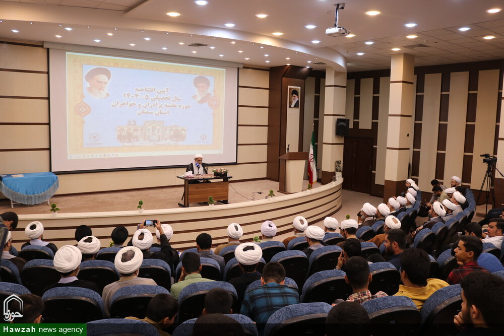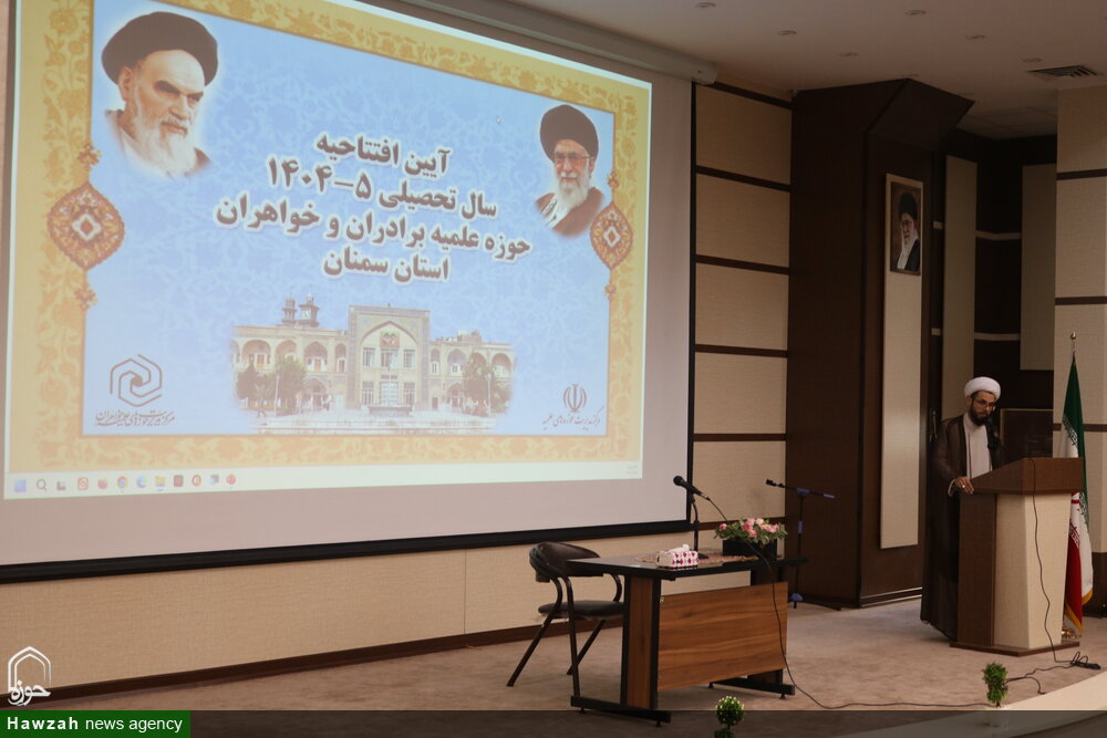 حوزه/ آیین افتتاحیه سال تحصیلی حوزه علمیه برادران و خواهران استان سمنان با حضور آیت الله محمد مهدی شب زنده دار، دبیر شورای عالی حوزه های علمیه کشور، حجت الاسلام و المسلمین مرتضی مطیعی، نماینده ولی فقیه در استان و امام جمعه سمنان و جمعی از مسئولان استانی و طلاب خواهر و برادر در سالن همایش بنت المصطفی مجتمع الزهرا(س) سمنان برگزار شد.