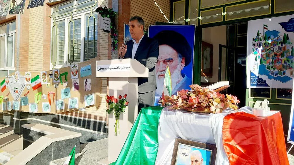 حوزه/ زنگ آغاز سال تحصیلی جدید و گرامیداشت هفته دفاع مقدس با حضور امام جمعه، فرماندار و دیگر مسئولین شهرستان شاهین دژ در مدرسه دخترانه شاهد این شهرستان نواخته شد.