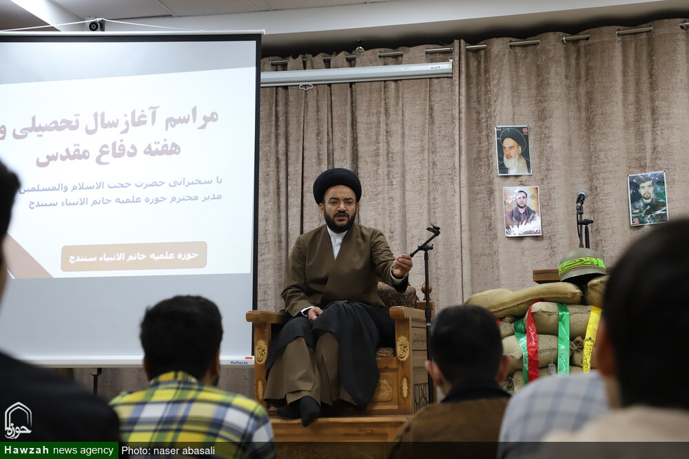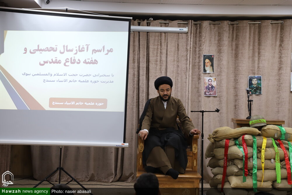 مراسم گرامیداشت هفته دفاع مقدس و همچنین آغاز سال تحصیلی جدید با سخنرانی حجتالاسلام والمسلمین سید محمد نبوی و حضور طلاب و اساتید، در نمازخانه مدرسه علمیه خاتم الانبیاء سنندج برگزار شد.