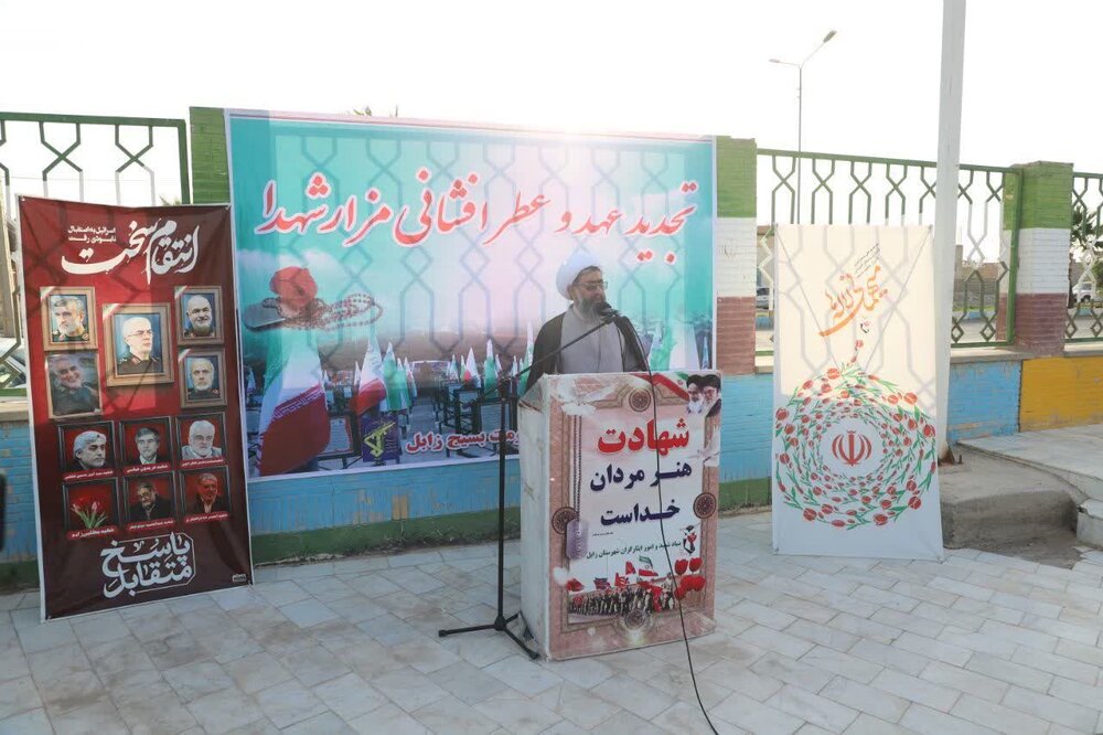 این مراسم با حضور حجتالاسلام و المسلمین پوراندخت امام جمعه زابل،جمعی از مسئولان، روحانیون، خانواده معظم شهدا و اقشار مختلف مردم برگزار شد. امام جمعه زابل در حاشیه این مراسم ضمن تجلیل از مقام شامخ شهدا، بر ضرورت تبیین فرهنگ ایثار و شهادت برای نسل جوان و پاسداری از دستاوردهای انقلاب اسلامی تأکید کرد.