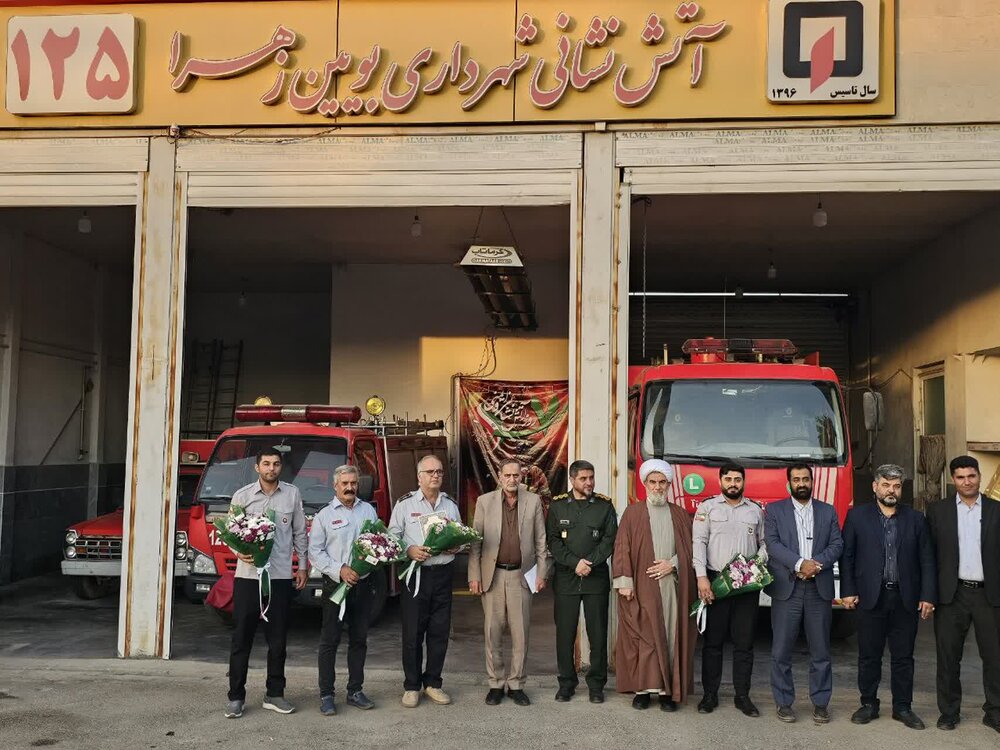حوزه / حجت الاسلام اسدالله رضوانی به همراه مسئولین شهرستان بویین زهرا با خانواده معظم شهیدان اینانلو دیدار وهمچنین با حضور در سازمان آتش نشانی این شهر به کارکنان این مجموعه تبریک وخدا قوت عرض نمودند