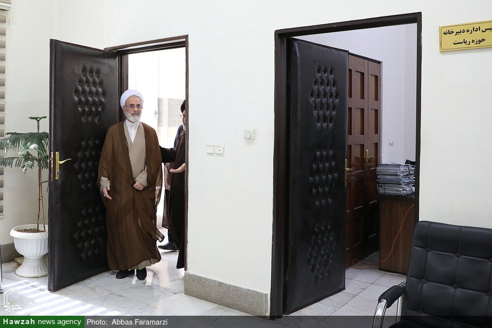 آیت الله اعرافی، مدیر حوزه های علمیه از دادگستری قم بازدید کرد.