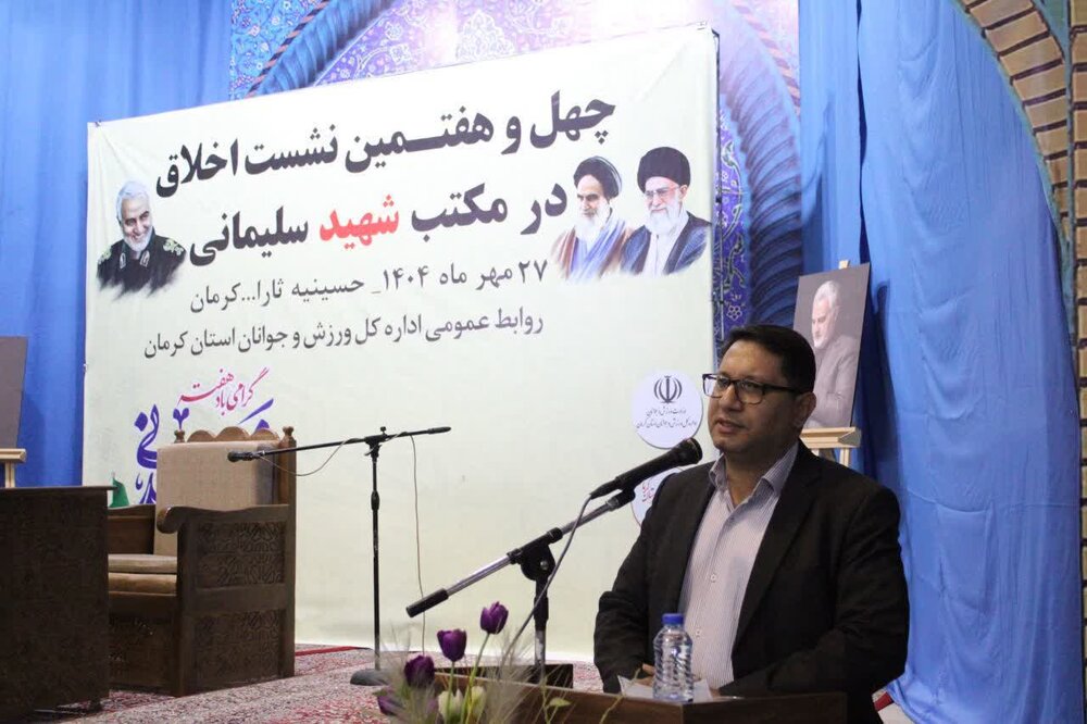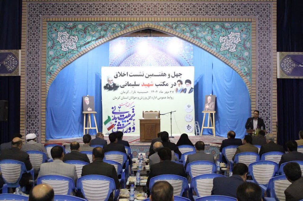 حوزه/ چهل و هفتمین نشست اخلاق در مکتب شهید سلیمانی به مناسبت هفته تربیت بدنی و ورزش، به میزبانی اداره کل ورزش و جوانان استان کرمان و باحضور مدیران دستگاههای اجرایی کرمان با سخنرانی نماینده ولی فقیه در استان در حسینیه ثارالله کرمان برگزار شد.
