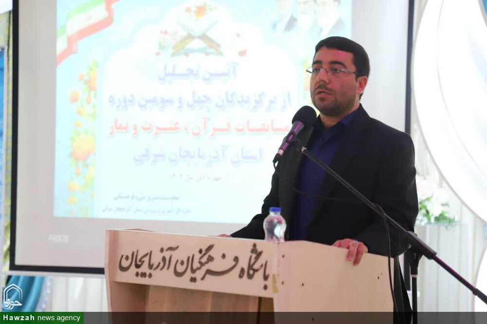 حوزه/ آئین اختتامیه مسابقات قرآن، عترت و نماز و تجلیل از منتخبین مرحله استانی و کشوری چهل و سومین دوره مسابقات قرآن، عترت و نماز دانش آموزی آذربایجان‌شرقی روز یکشنبه چهارم ابان ماه در محل باشگاه فرهنگیان تبریز برگزار شد.