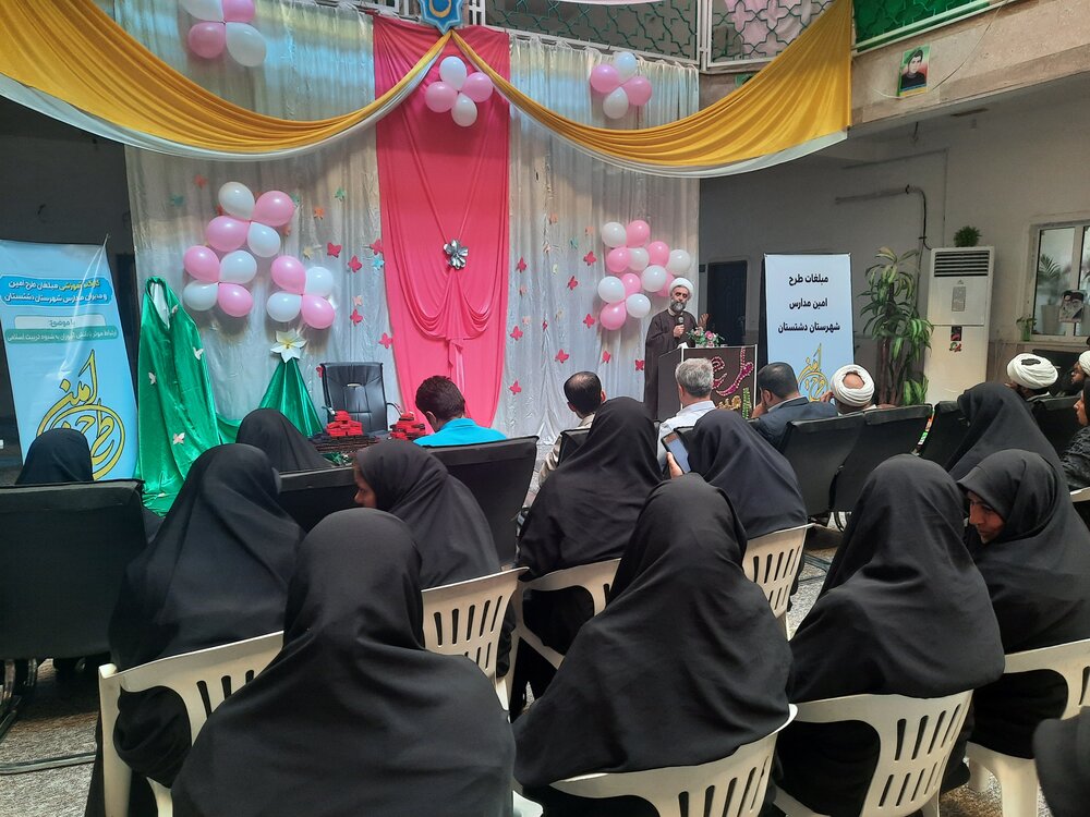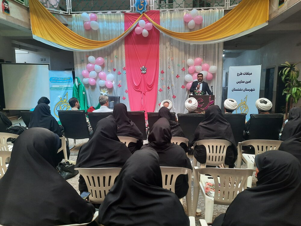 حوزه/همایش طلاب خواهر «طرح امین» مدرسه علمیه حضرت رقیه(س) برازجان با حضور مهمانان ویژه استان و شهرستان، مدیر حوزه علمیه خواهران استان بوشهر، امام جمعه برازجان و همچنین هیئت همراه از اداره آموزش و پرورش شهرستان دشتستان به سرپرستی معاونت پرورشی و حضور پرشور ۵۰ مدیر مدارس دخترانه با همراهی مبلغ طرح امین برگزار شد.