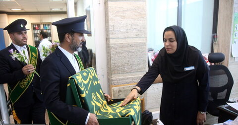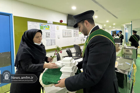 به گزارش خبرگزاری حوزه، جمعی از خادمان حرم مطهر حضرت فاطمه معصومه سلام الله علیها به همراه پرچم متبرک این آستان مقدس به مناسبت سالروز میلاد حضرت زینب کبری سلام الله علیها و روز پرستار با حضور در بیمارستانهای قم با اهدای گل و توزیع کیک میلاد حضرت زینب سلام الله علیها از پرستاران تقدیر کردند.