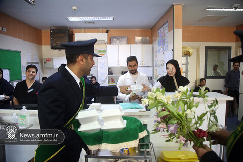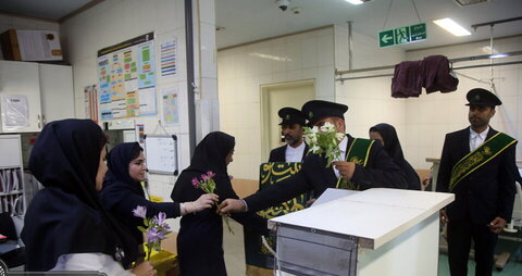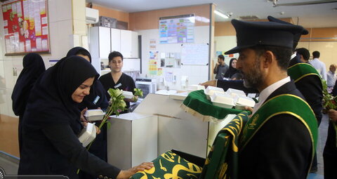 حوزه/ جمعی از خادمان حرم مطهر حضرت فاطمه معصومه سلام الله علیها در سالروز میلاد حضرت زینب کبری سلام الله علیها و روز پرستار با حضور در بیمارستانهای قم از پرستاران تقدیر کردند.