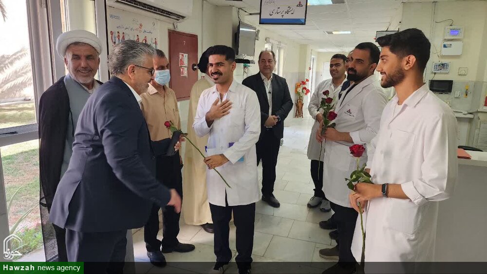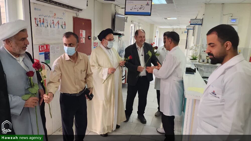 حوزه/ حجتالاسلام سید علی هاشمینژاد امام جمعه جم با حضور در بیمارستان این شهر از پرستاران به مناسبت روز پرستار و ولادت حضرت زینب سلاماللهعلیها تجلیل کرد.