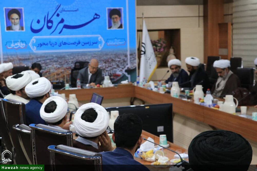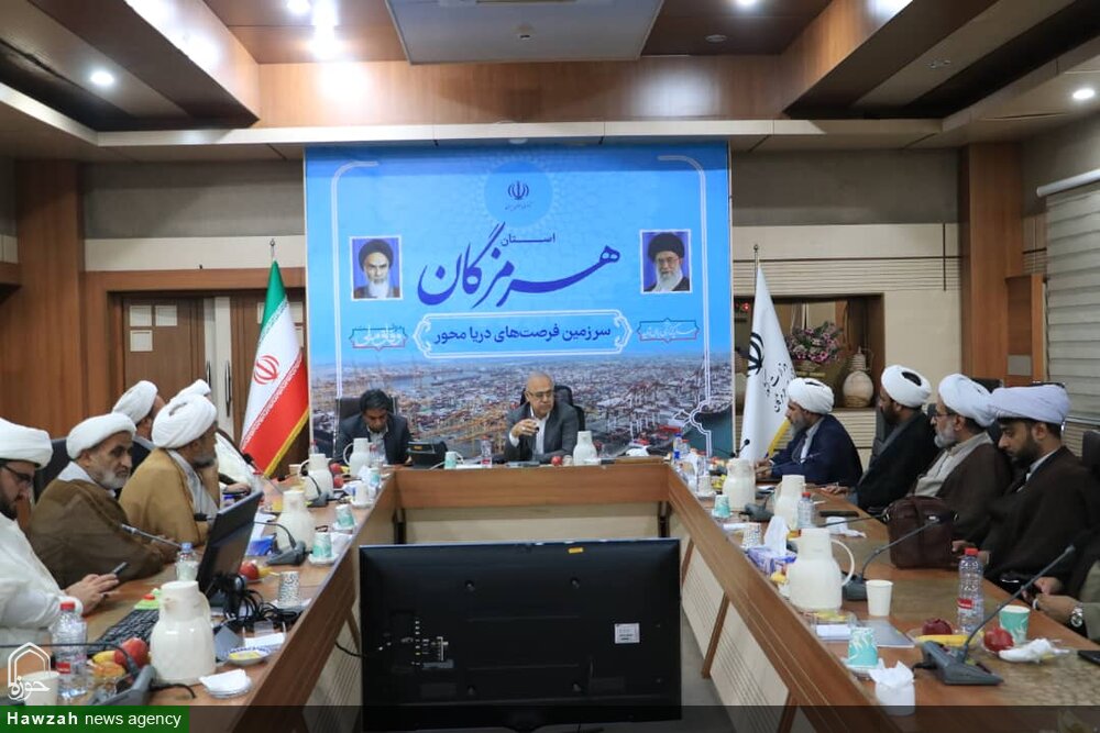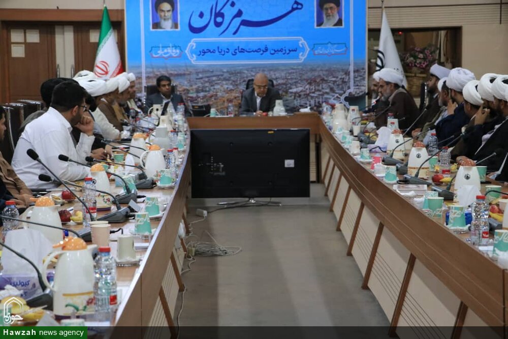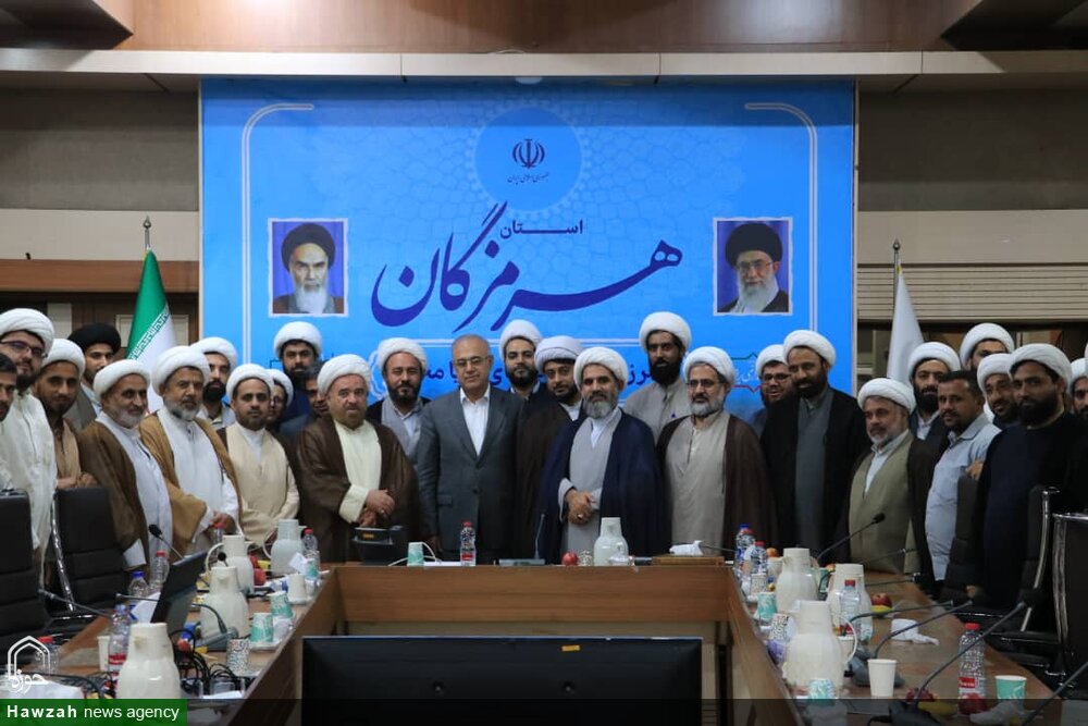 مدیران و معاونین مدارس علمیه استان هرمزگان به ریاست حجت الاسلام والمسلمین حقیقی مدیر حوزه علمیه استان هرمزگان با محمد آشوری تازیانی استاندار هرمزگان دیدار و گفت و گو کردند.