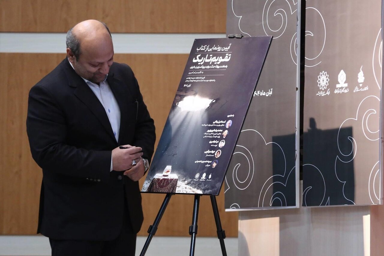 آیین رونمایی از کتاب «تقویم تاریک»، یادداشت روزانه جنگ تحمیلی دوازدهروزه به قلم میثم امیری با حضور اسماعیل بقایی معاون وزیر و سخنگوی وزارت امور خارجه، محمدرضا نوروزپور معاون اموررسانهای و تبلیغات وزارت فرهنگ و ارشاد اسلامی، سید صادق پژمان مدیرعامل موسسه کمک به توسعه فرهنگ و هنر، جواد موگویی مستندساز و نویسنده کتاب در فرهنگسرای اندیشه برگزار شد.