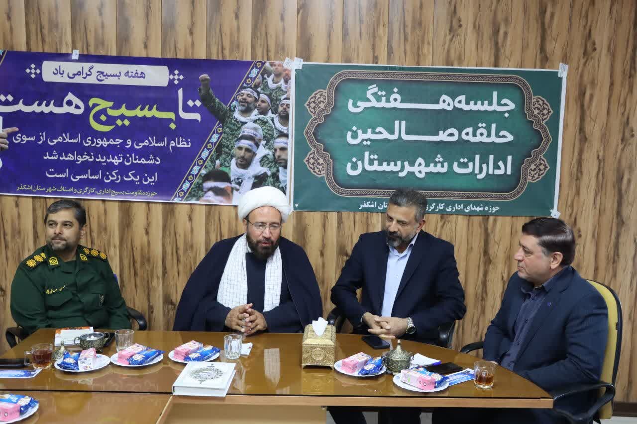 حوزه/ امروز ۱ آبان ماه ۱۴۰۴ جلسه حلقه صالحین مدیران ادارات شهرستان اشکذر به مناسبت هفته بسیج توسط حوزه مقاومت بسیج اداری کارگری و اصناف و به میزبانی شبکه بهداشت و درمان و با حضور امام جمعه و فرماندهی ناحیه مقاومت بسیج و جمعی از مدیران دستگاه‌ های اجرایی شهرستان اشکذر برگزار شد.
