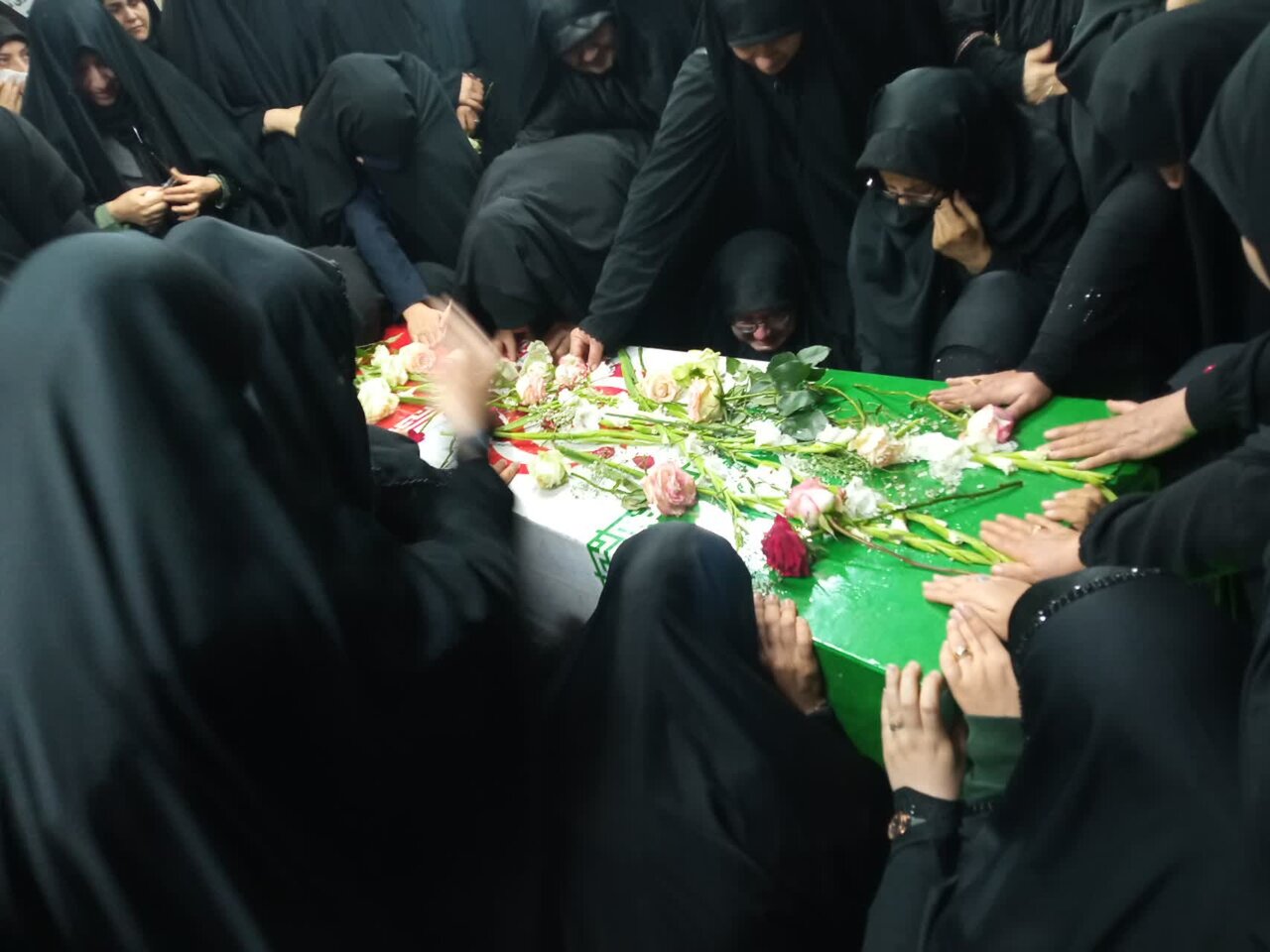تشییع پیکر شهید گمنام همزمان با عزاداری شهادت حضرت زهرا سلام الله علیها با حضور طلاب و عموم بانوان و ارادتمندان خاندان اهل بیت علیهم السلام در مدرسه علمیه فاطمه زهرا سلام الله علیها اراک.