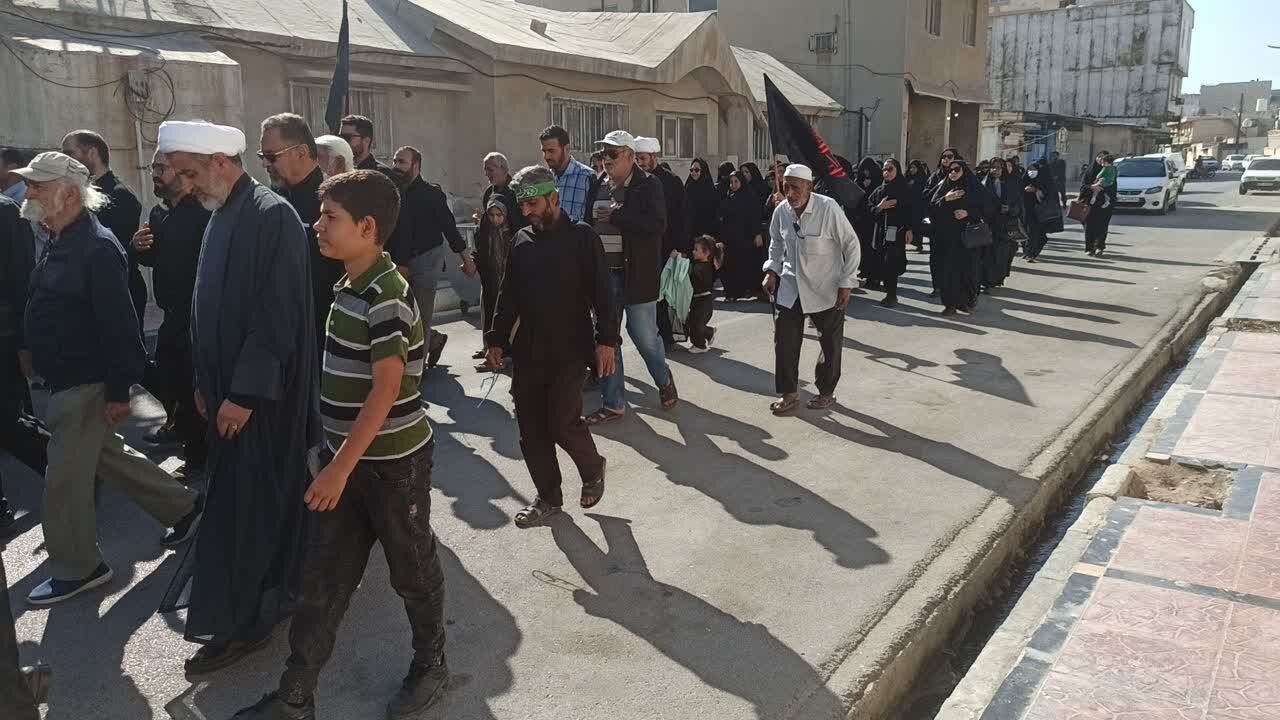 حوزه/ دسته جات عزاداری در جزیره خارگ همزمان با سالروز شهادت حضرت فاطمه زهرا سلام‌الله‌علیها به سوگواری پرداختند.