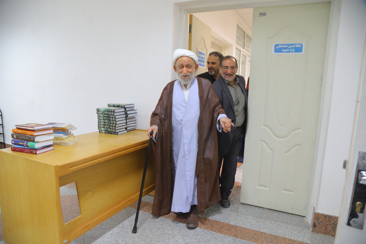 آیت الله استادی از کتابخانه مرحوم آیت الله سید هادی خسروشاهی بازدید کردند.