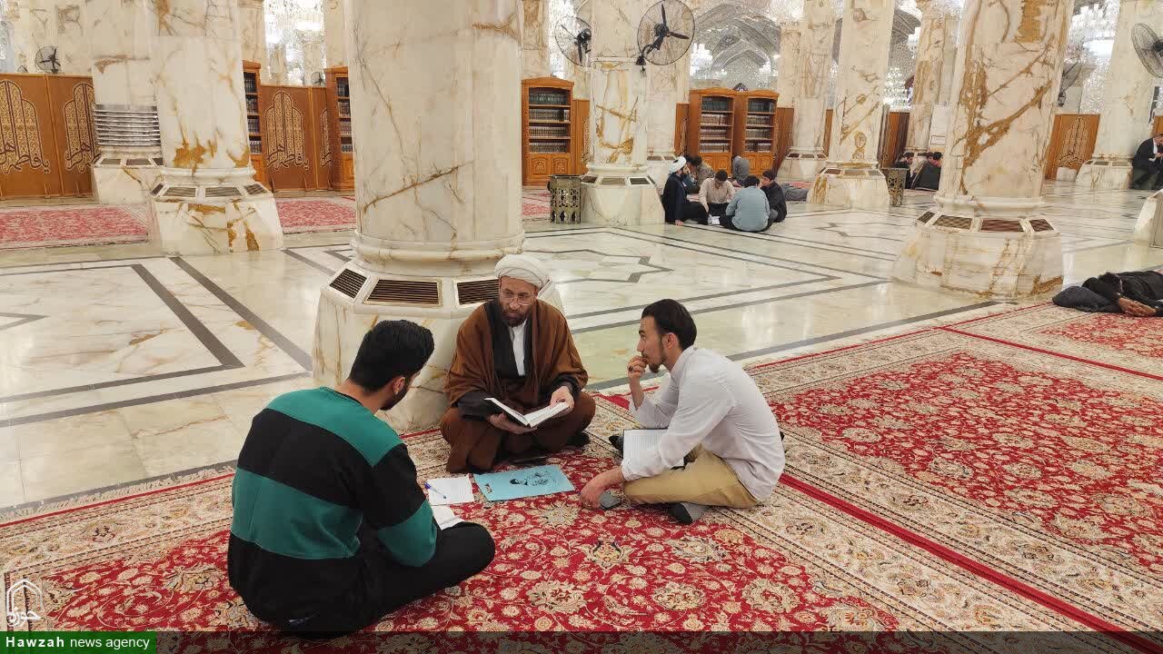حوزه / طلاب مدرسه علمیه شیخ علیخان زنگنه تویسرکان در سفر به عتبات عالیات، کلاسهای درس خود را در حرم مطهر امیرالمومنین علی(ع) برگزار کردند.