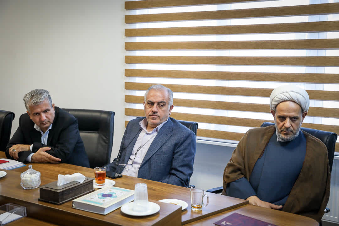 منوچهر خواجه دلویی رئیس بنیاد مسکن انقلاب اسلامی کشور در سفر به استان قزطوین با حجت الاسلام والمسلمین حسین مظفری (نماینده ولی فقیه در استان قزوین ) دیدار وگفتگو کرد