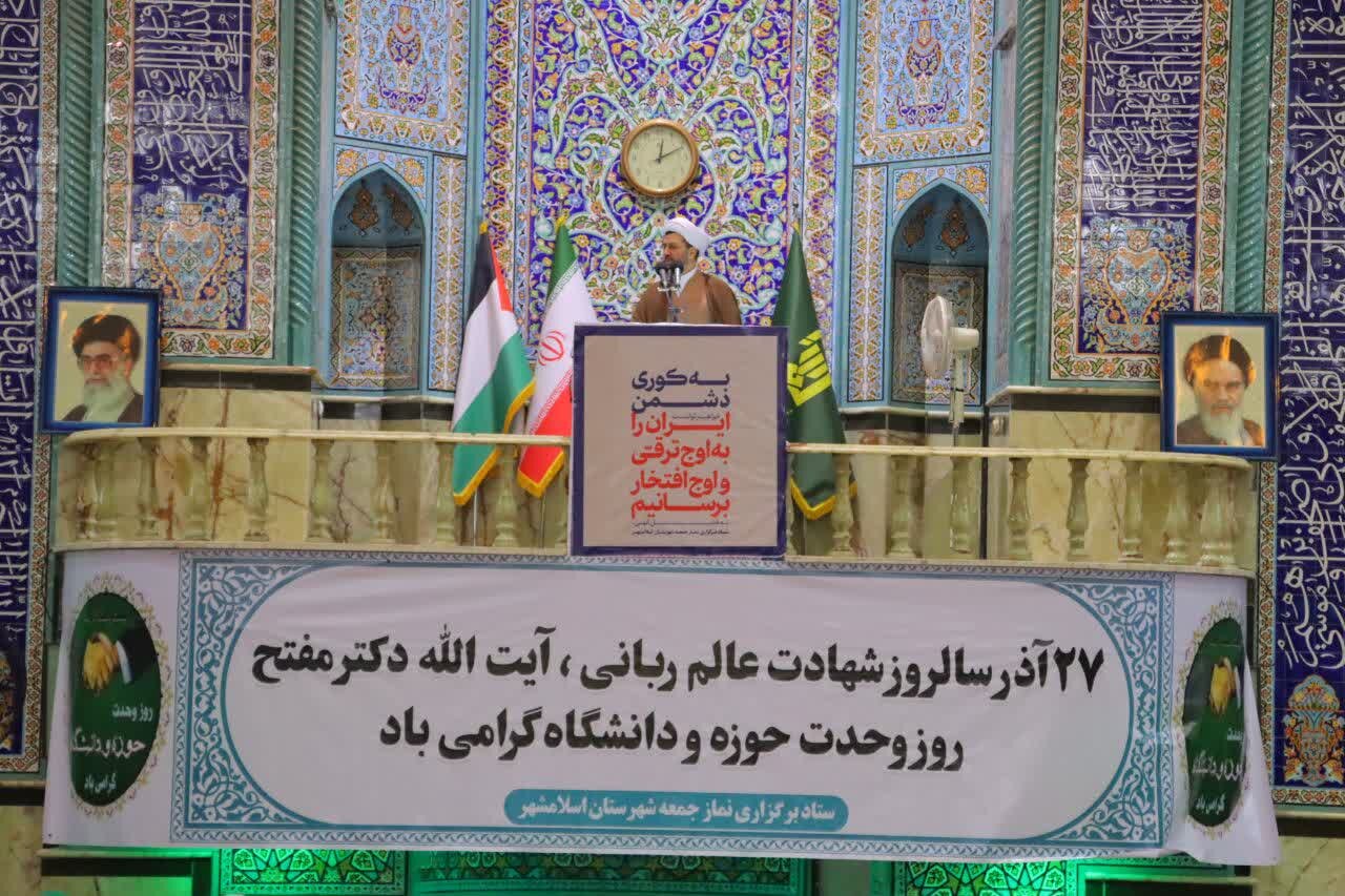 آئین عبادی و سیاسی نماز جمعه شهرستان اسلامشهر به امامت حجت الاسلام و المسلمین محمدباقر برقراری و حضور پرشور مردم شهیدپرور و انقلابی اسلامشهر برگزار شد.