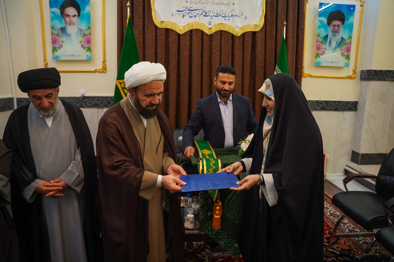 حوزه/ همسر سردار شهید حاج رمضان و بانوان مجری و سخنران مراسم اجتماع بزرگ بانوان مدافع حریم عفاف، حجاب و خانواده در آستان مقدس حضرت احمدبن موسی الکاظم شاهچراغ(ع)، با حجت الاسلام والمسلمین کلانتری؛ تولیت حرم مطهر، دیدار و گفتگو کردند.