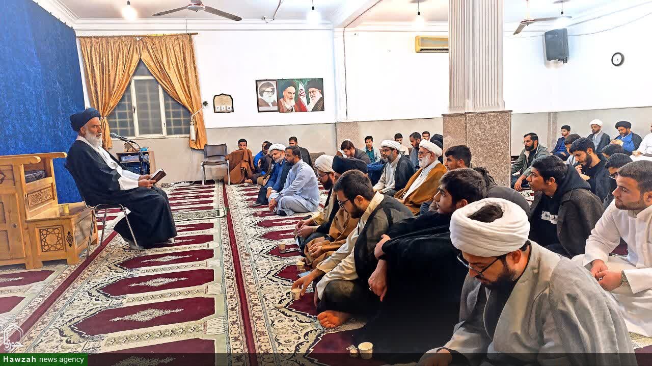 حوزه/ درس اخلاق به همراه اقامه نماز صبح باحضور حجت الاسلام و المسلمین موسوی فرد نماینده ولی فقیه در استان خوزستان در جمع طلاب، اساتید و کادر مدرسه علمیه سید الشهداء(ع) خرمشهر برگزار شد.