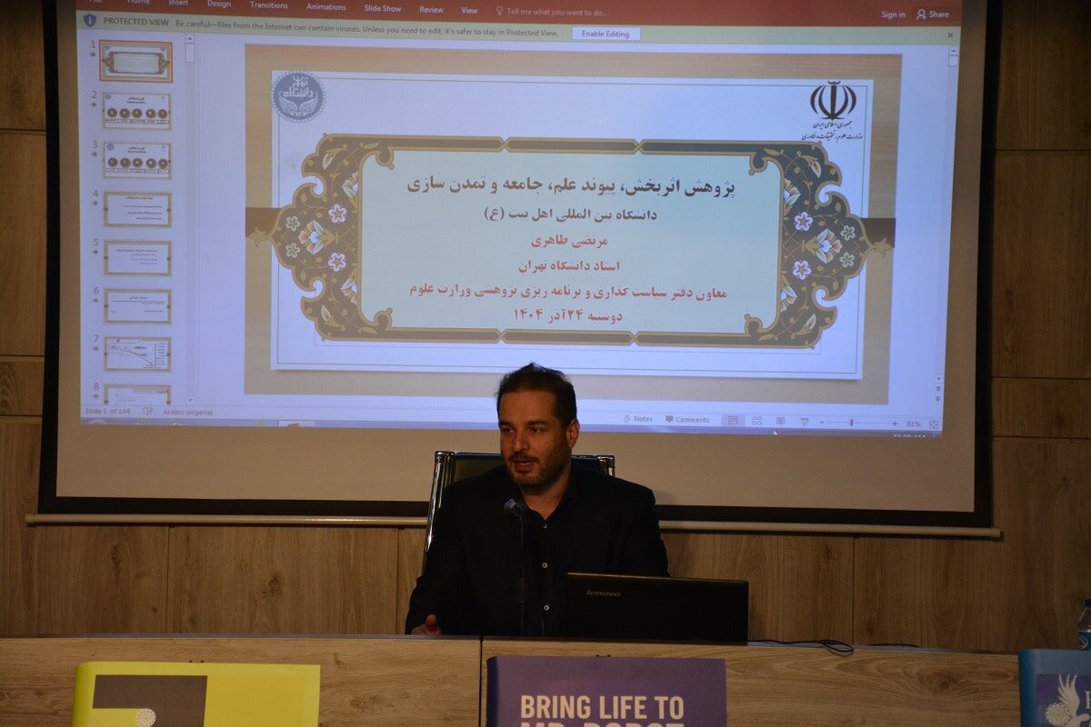 مراسم گرامیداشت هفته پژوهش با حضور دکتر مرتضی طاهری، معاون دفتر برنامه ریزی وزارت علوم، تحقیقات و فناوری و حجت السلام والمسلمین سعید جازاری رییس دانشگاه بین المللی اهل علیهم السلام در سالن همایش این دانشگاه برگزار شد.