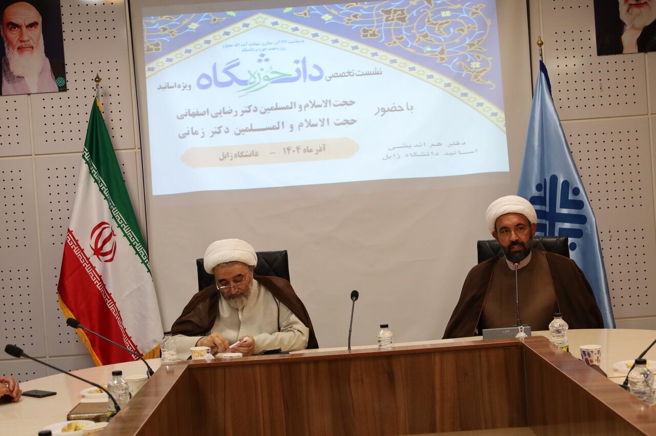 حوزه/ در ادامه سلسله نشست های وحدت حوزه و دانشگاه در سیستان و بلوچستان، نشستی با حضور حجت الاسلام والمسلمین رمضانی مدیر حوزه علمیه سیستان و بلوچستان و معاونین، حجتالاسلام والمسلمین محمد حسن زمانی مشاور مدیر حوزههای علمیه کشور و حجت الاسلام والمسلمین محمد علی رضایی اصفهانی رئیس مجتمع آموزش عالی قرآن و حدیث جامعه المصطفی، اساتید و مسئولین دانشگاه زابل، امروز در سالن همایشهای دانشگاه زابل برگزار گردید.