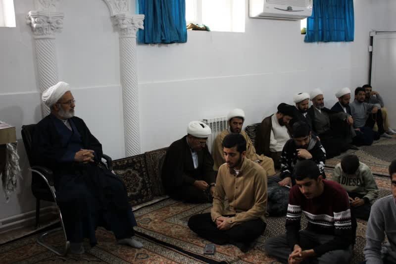 حوزه/ مراسم درس اخلاق هفتگی با سخنرانی حجت الاسلام علم الهدی و با حضور اساتید و طلاب در نماز خانه مدرسه علمیه امام صادق (علیه‌السلام) بیجار برگزار شد.