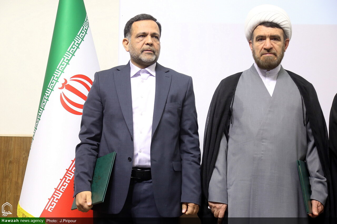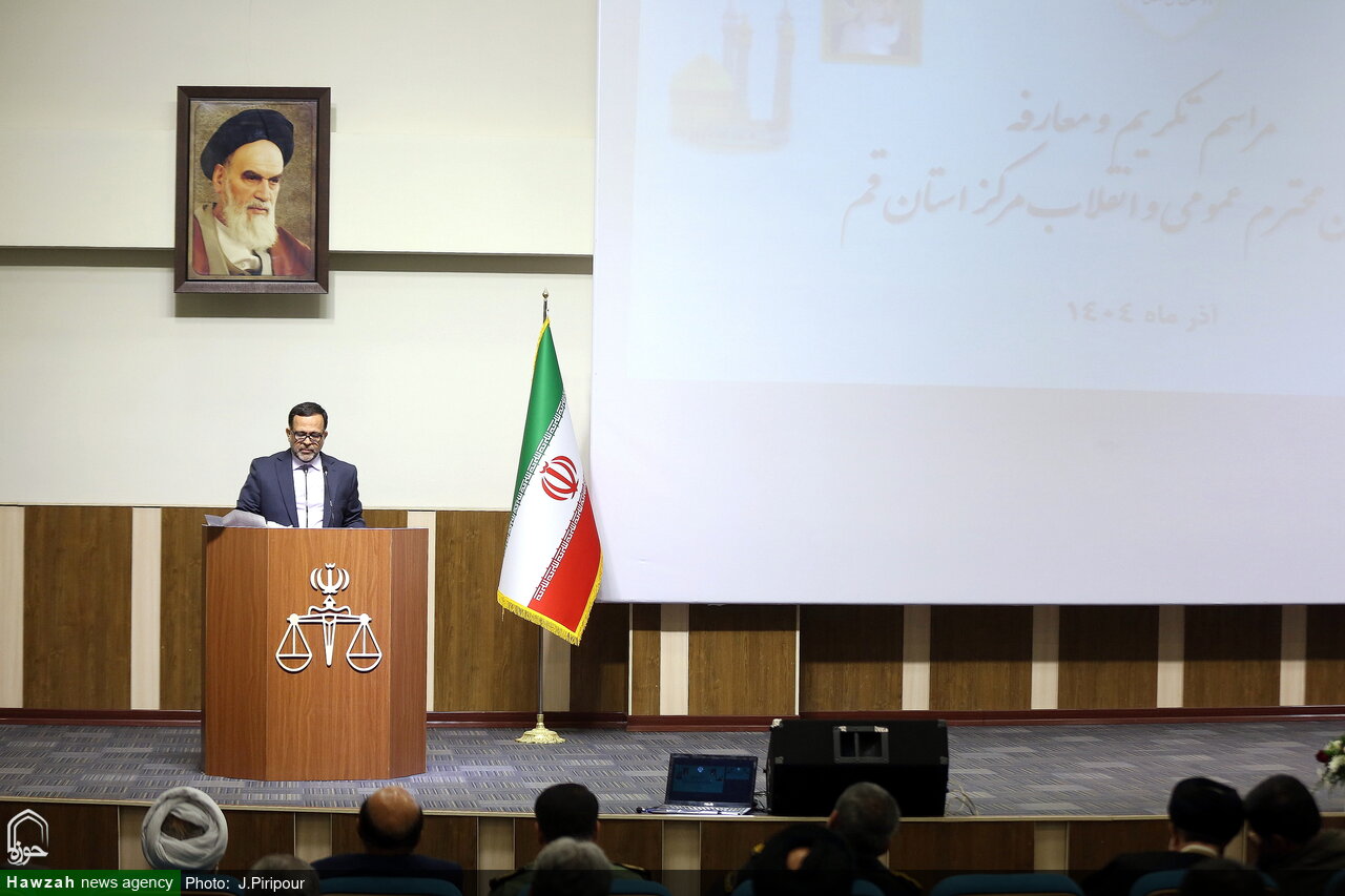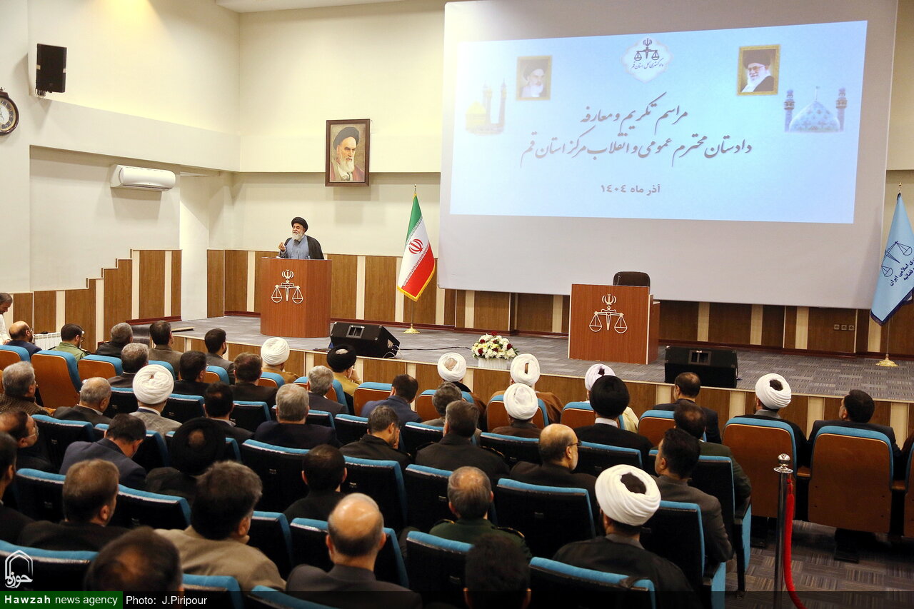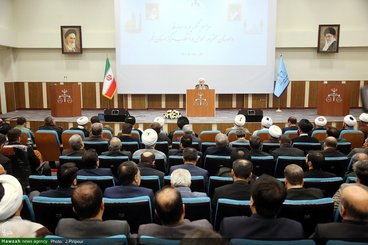 حوزه/ مراسم تکریم و معارفه دادستان عمومی و انقلاب اسلامی استان قم با حضور حجتالاسلام والمسلمین موحدیآزاد دادستان کل کشور در مرکز آموزش قضات قم برگزار شد.