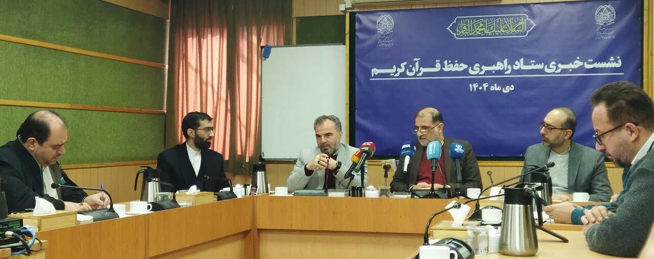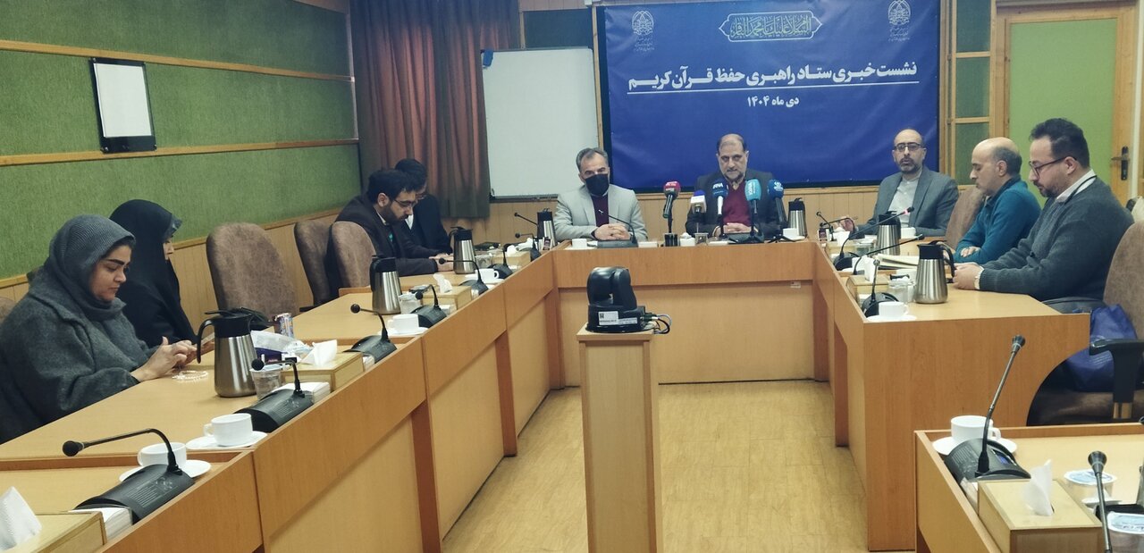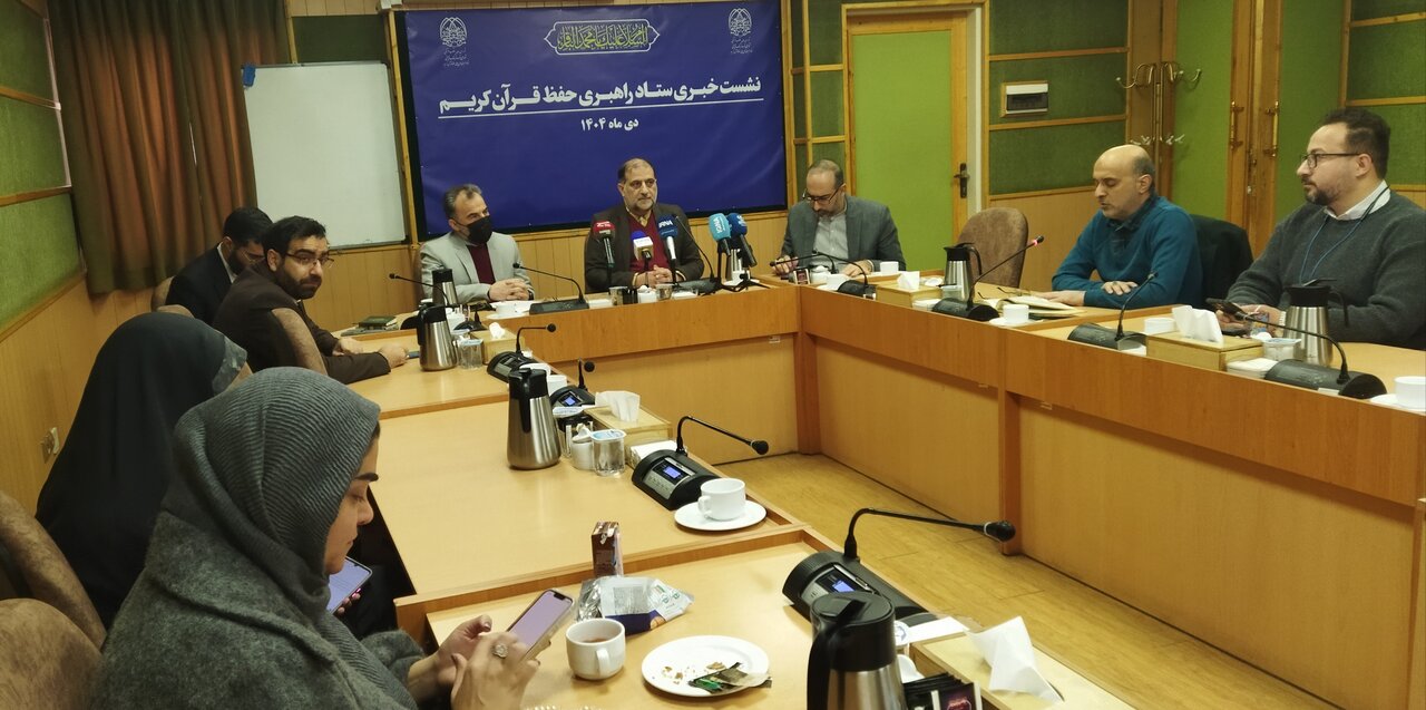 حوزه/ نشست خبری «ستاد راهبری حفظ قرآن کریم»، صبح امروز اول دی در سالن جلسات دبیرخانه شورای عالی انقلاب فرهنگی برگزار شد. محمدمهدی بحرالعلوم، دبیر، علی مقنی نصرآبادی، مسئول کارگروه محتوایی و آموزش، مرتضی خدمتکارآرانی، مسئول کارگروه نظارت و ارزیابی و محمدحسین فدوی، مسئول کارگروه طرح و برنامه و همچنین چند تن دیگر از مدیران ستاد راهبری حفظ قرآن کریم در این نشست به تشریح برنامه های این ستاد در راستای تحقق مطالبه مقام معظم رهبری در زمینه تربیت ده میلیون حافظ قرآن پرداختند.
