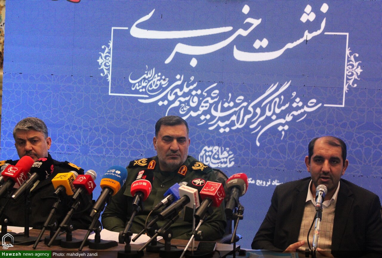 حوزه/ نشست خبری ششمین سالگرد بزرگداشت سپهبد پاسدار شهید حاج قاسم سلیمانی، صبح امروز در کرمان، پایتخت مقاومت جهان اسلام، با حضور فرماندهان امنیتی و انتظامی استان شامل سردار نظری فرمانده سپاه ثارالله، سردار موقوفه‌ای فرمانده انتظامی و دکتر جلالی معاون امنیتی استاندار، در مجموعه بیت‌الزهرای موقوفه شهید سلیمانی برگزار شد.