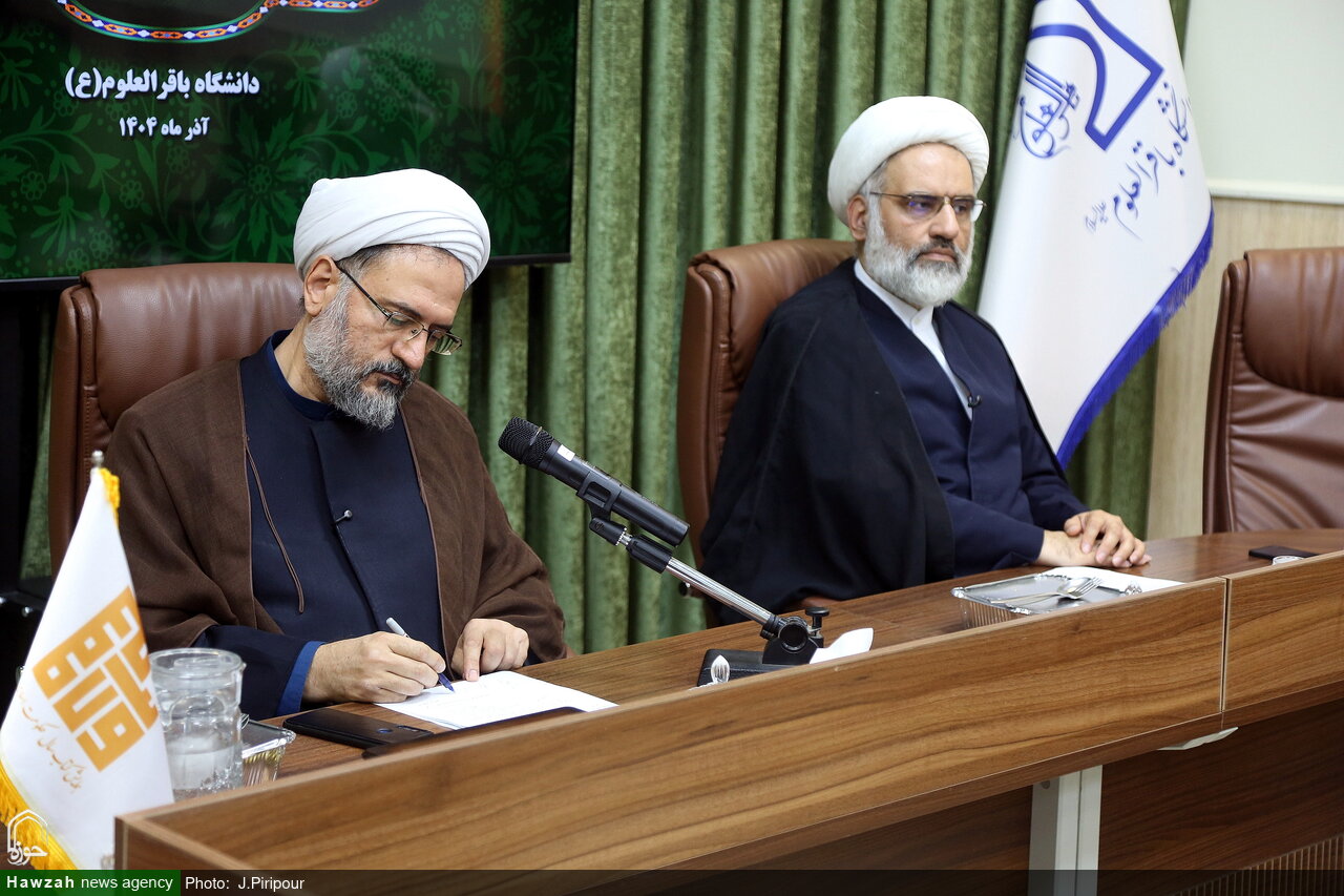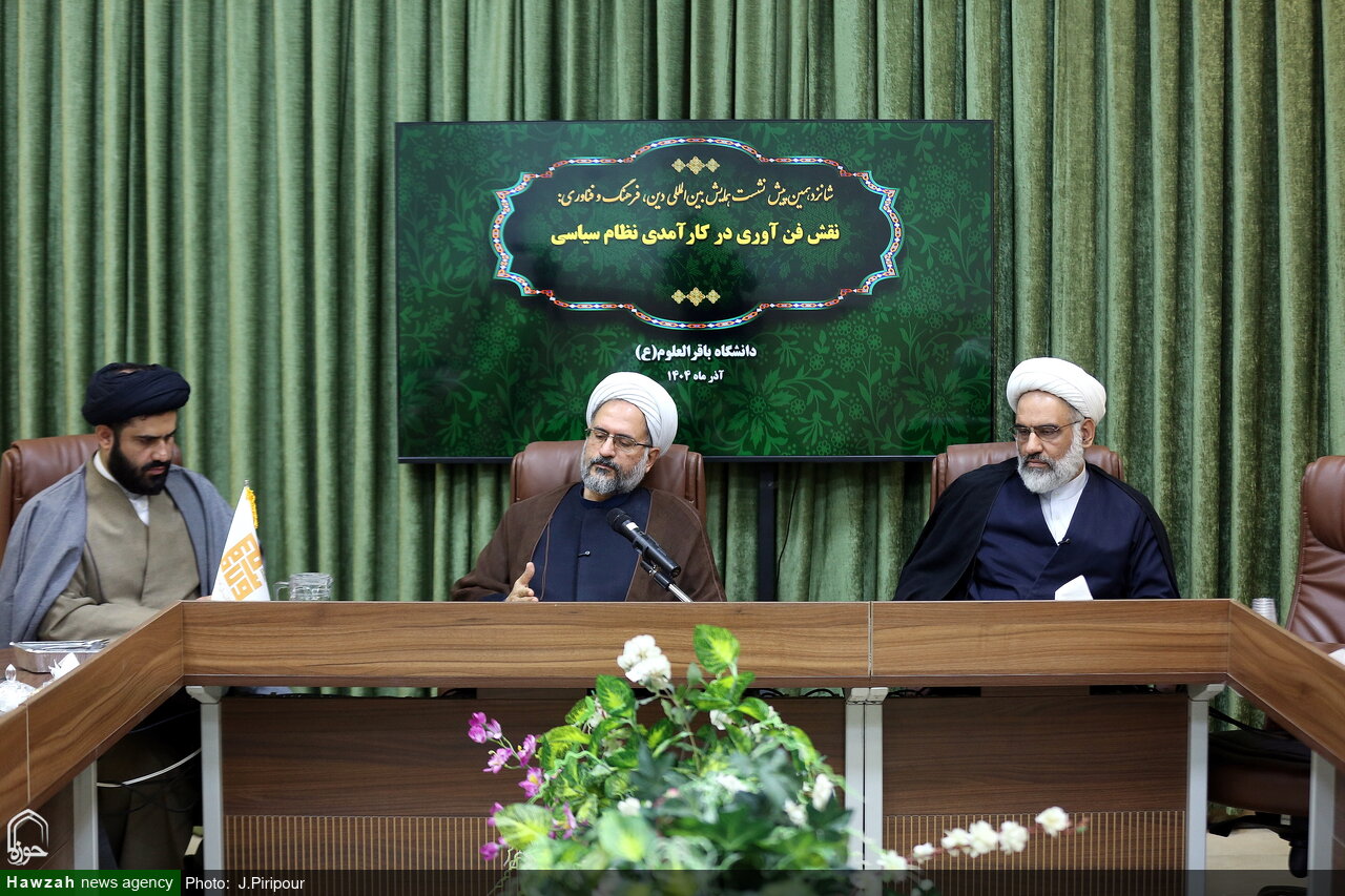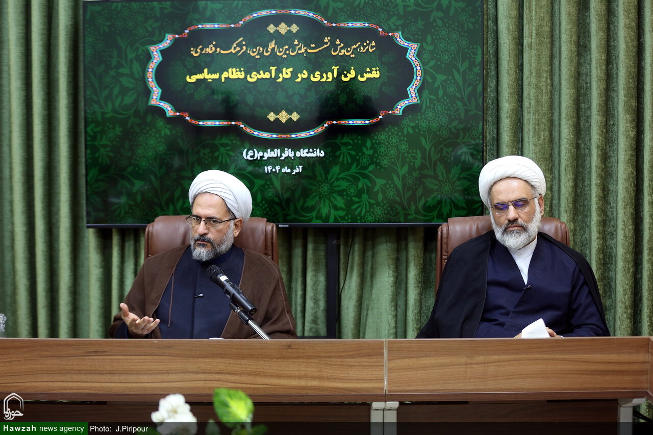 مرکز تحقیقات علمی حکومت اسلامی با مشارکت دانشگاه باقرالعلوم(ع) و هفتمین همایش کتاب سال حکومت اسلامی،سومین پیشهمایش همایش بین المللی دین فرهنگ و فنآوری با موضوع نشست:«نقش فنآوری در کارآمدی نظام سیاسی» با حضور حجت الاسلام و المسلمین فلاح تفتی نماینده مجلس خبرگان رهبری، حجت الاسلام و المسلمین خان محمدی عضو هیات علمی دانشگاه باقرالعلوم (ع) در سالن شهید بهشتی دانشگاه باقرالعلوم(ع) برگزار کرد.