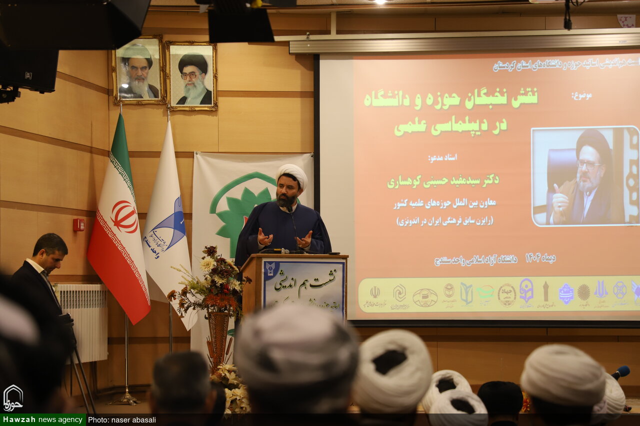 حوزه / نشست هماندیشی اساتید حوزه و دانشگاههای استان کردستان با موضوع «نقش نخبگان حوزه و دانشگاه در دیپلماسی علمی» بهمناسبت هفته وحدت حوزه و دانشگاه و با همکاری مرکز مدیریت حوزه علمیه استان کردستان و دانشگاههای استان در دانشکده علوم انسانی دانشگاه آزاد اسلامی سنندج برگزار شد، حجتالاسلام والمسلمین سید مفید حسینی کوهساری، معاون بینالملل حوزههای علمیه، بهعنوان سخنران ویژه به تبیین جایگاه نخبگان علمی در عرصه دیپلماسی و بین الملل پرداخت.