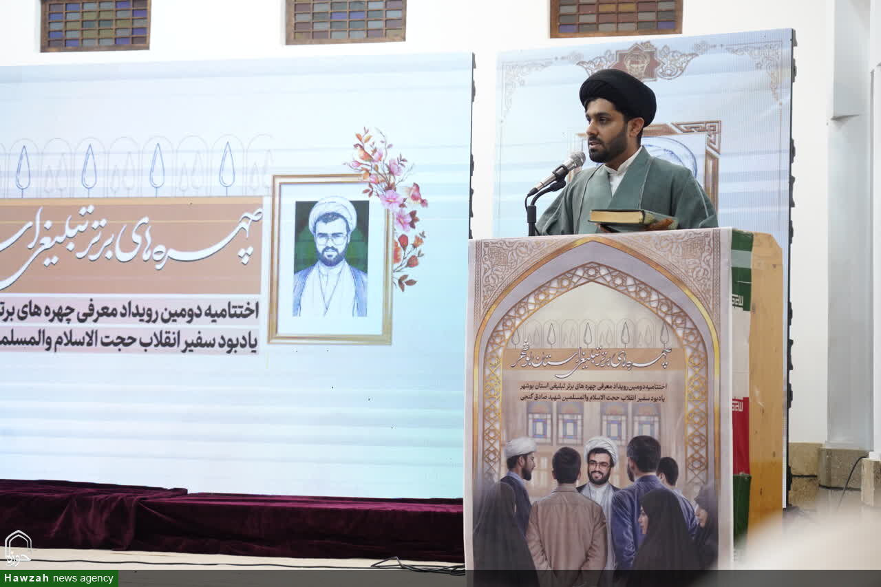حوزه/ آیین تجلیل از چهرههای برتر تبلیغی استان بوشهر و اختتامیه دومین رویداد شهید گنجی با حضور حجتالاسلام والمسلمین صفایی بوشهری نماینده ولیفقیه در استان بوشهر و مبلغین و مبلغات استان در سالن شهید آوینی تبلیغات اسلامی برگزار شد.