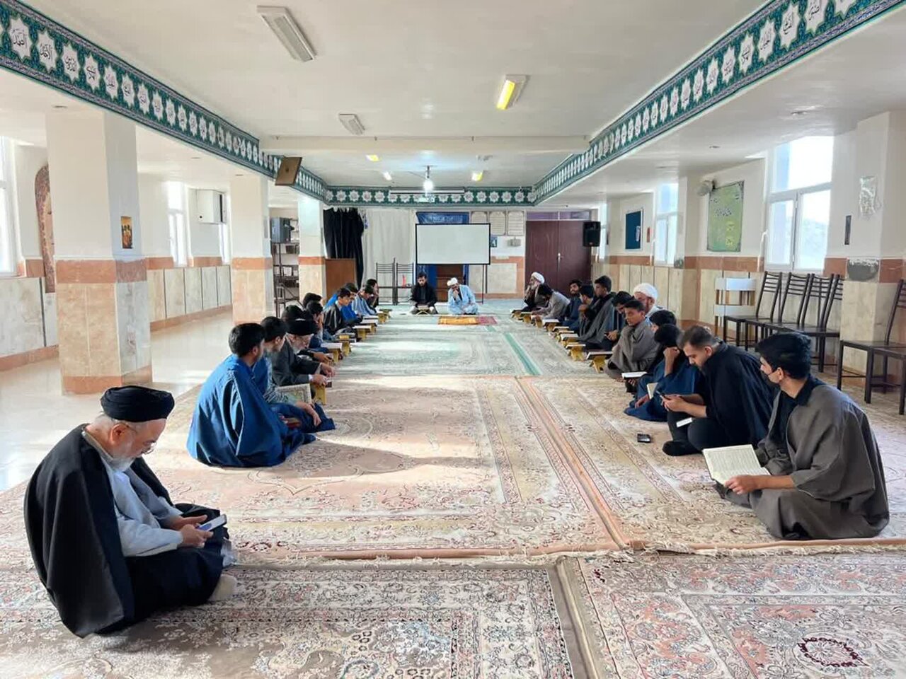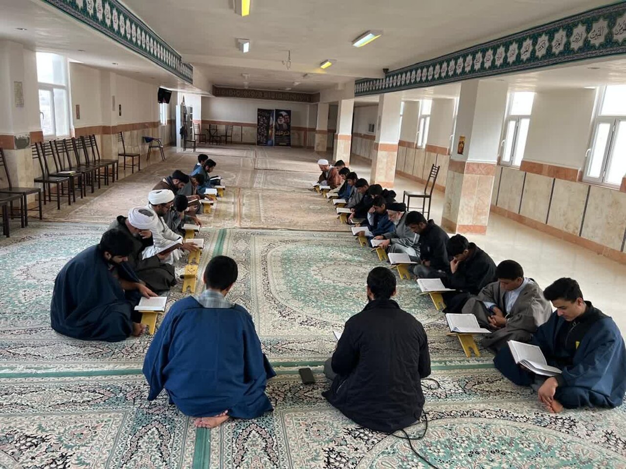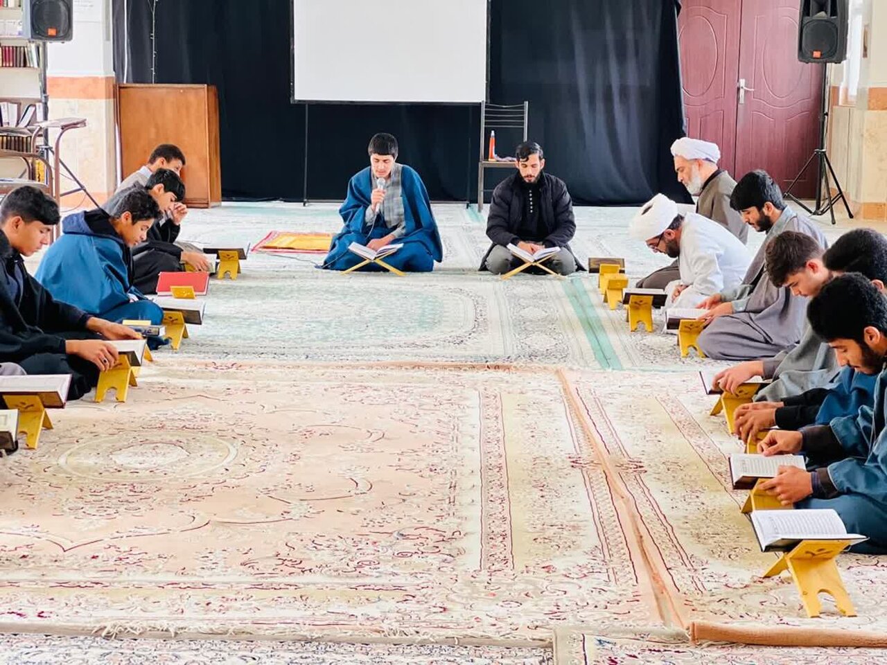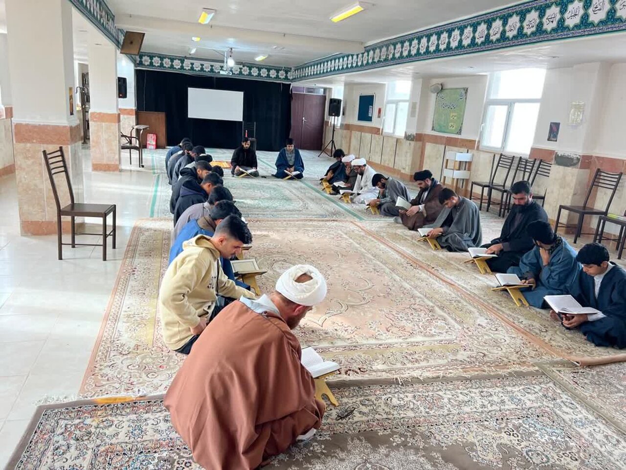 حوزه/ همزمان با سالروز شهادت امام هادی(ع)، محفل انس با قرآن کریم با قرائت سوره فتح توسط طلاب مدرسه علمیه الغدیر نراق برگزار و ثوابش به آن امام همام، هدیه شد.