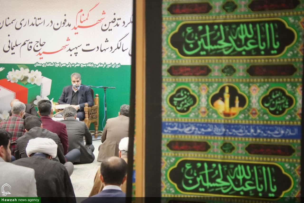 حوزه/ سومین سالگرد تدفین شهید گمنام مدفون در استانداری سمنان و ششمین سالگرد شهادت سپهبد شهید حاج قاسم سلیمانی با حضور حجت الاسلام والمسلمین مطیعی نماینده ولی فقیه در استان سمنان و محمد جواد کولیوند، استاندار سمنان، سردار شوقانی، فرمانده سپاه قائم آل محمد(عج)، سردار عباس مطهری مدیر کل حفظ آثار و نشر ارزشهای دفاع مقدس و مقاومت استان، معاونین استاندار، مشاوران استاندار و جمعی از مدیران ستادی، اجرایی و کارکنان استانداری برگزار شد.