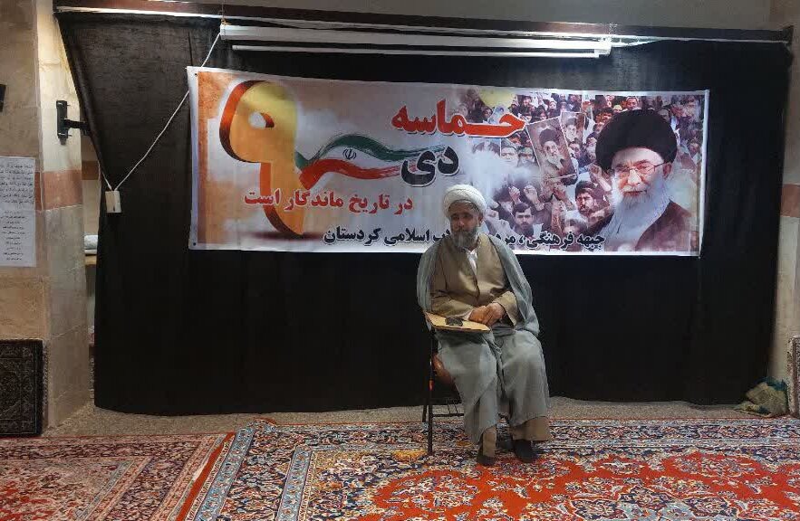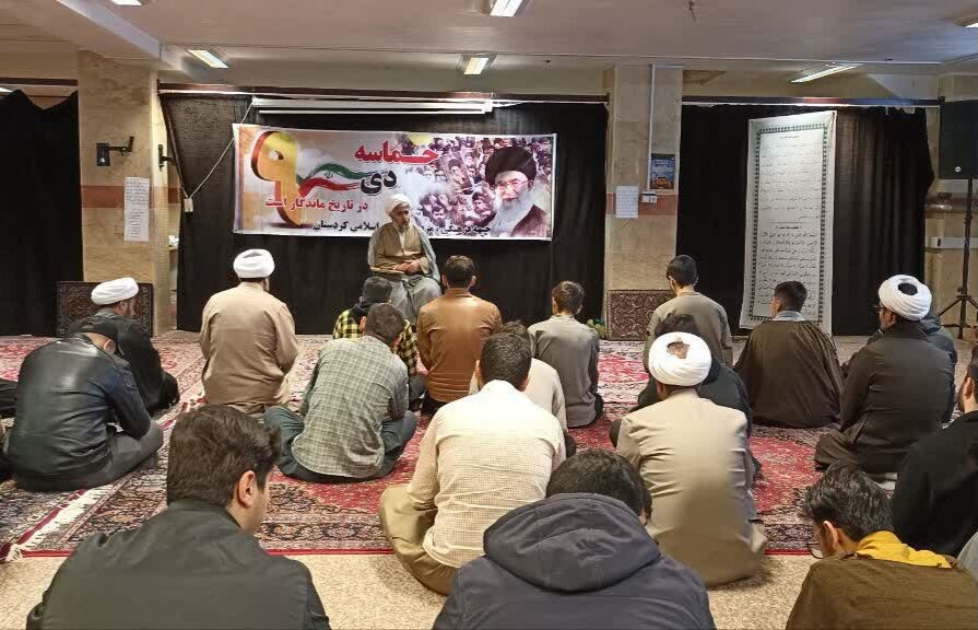 اجتماع اساتید وطلاب مدرسه علمیه امام صادق علیهالسلام شهرستان قروه، به مناسبت حماسه ۹ دی با سخنرانی حجتالاسلام انتظاری؛ امام جمعه بخش دلبران با سر دادن شعار های انقلابی توسط طلبه مهدی اسفندیاری برگزار شد.
