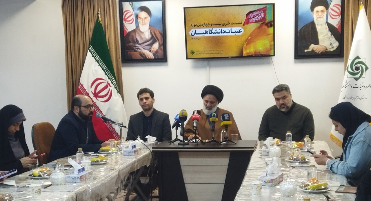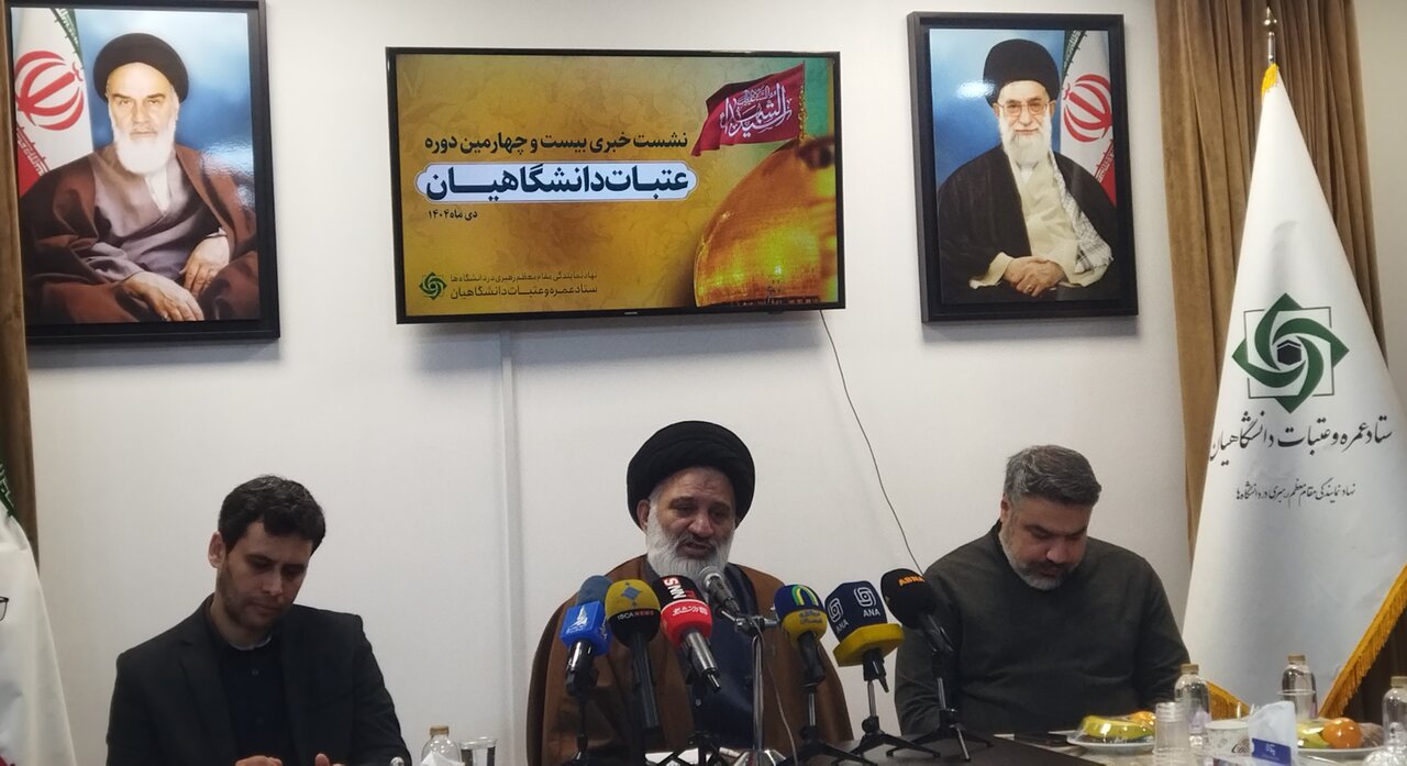 حوزه/ نشست خبری بیست و چهارمین دوره عتبات دانشگاهیان با حضور حجت الاسلام والمسلمین سیدمحمد طاهری، رییس و محسن مسلمی، معاون پشتیبانی و اعزام ستاد عمره و عتبات دانشگاهیان، امروز ۱۵ دی ماه در سالن جلسات این مجموعه برگزار شد که طی آن برنامه های بیست و چهارمین دوره عتبات دانشگاهیان تشریح شد.
