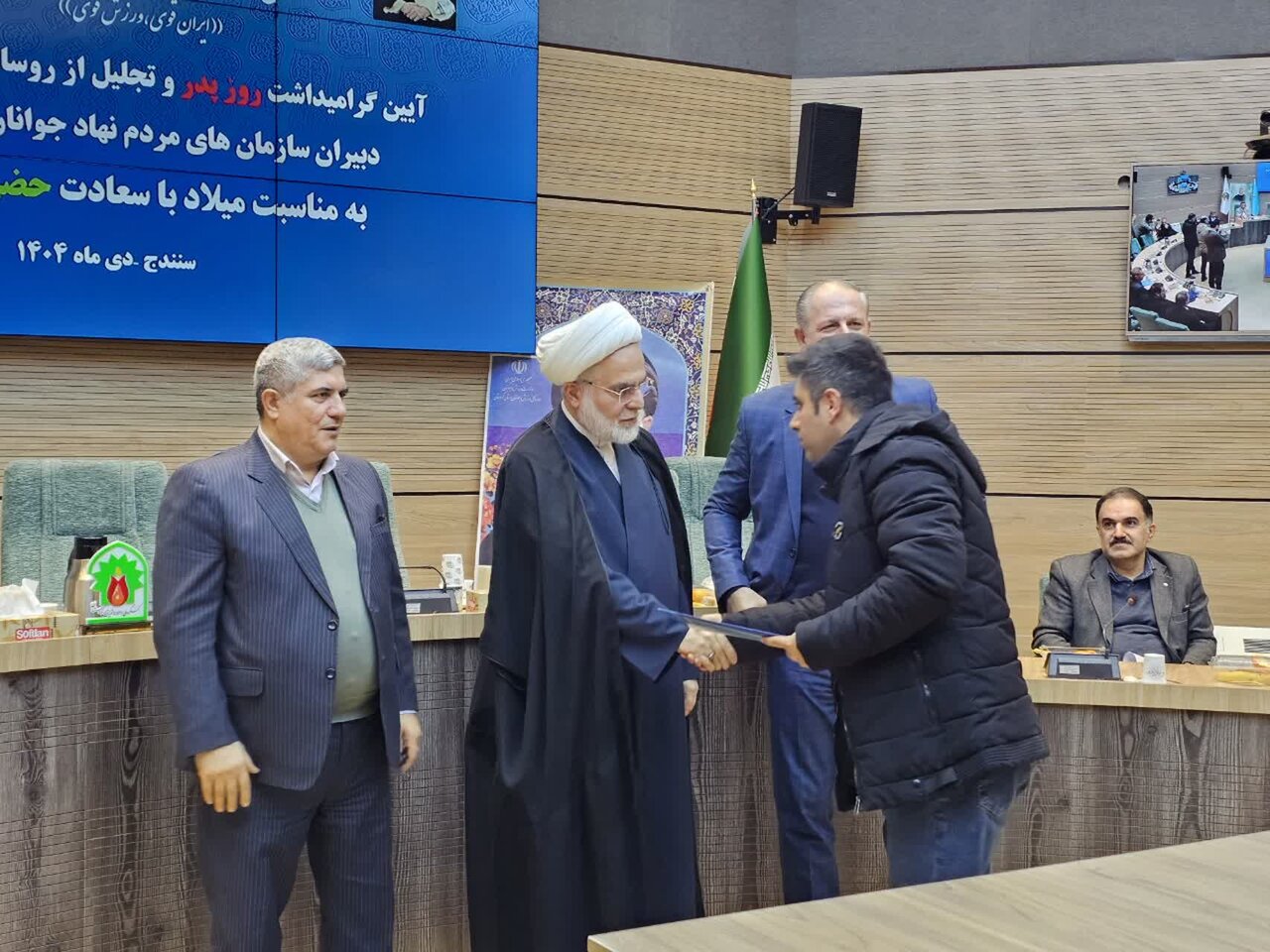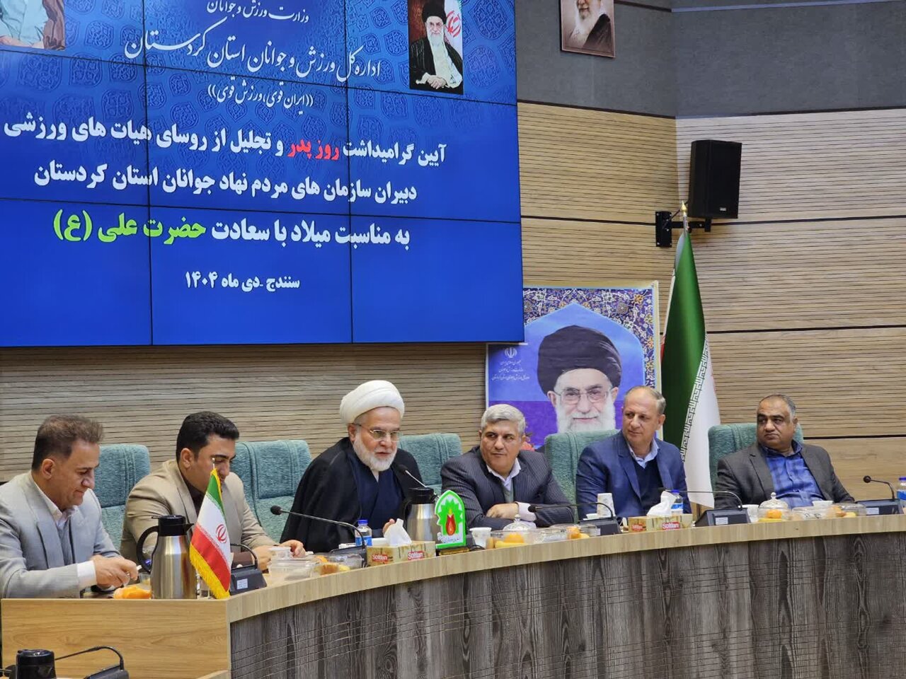 آیین گرامیداشت روز پدر و تجلیل از رؤسای هیئتهای ورزشی و دبیران سازمانهای مردمنهاد جوانان کردستان، به مناسبت میلاد با سعادت امام علی (ع)، با حضور حجتالاسلام والمسلمین پورذهبی؛ نماینده ولیفقیه در استان ، در سالن کنفرانس اداره کل ورزش و جوانان این استان برگزار شد.