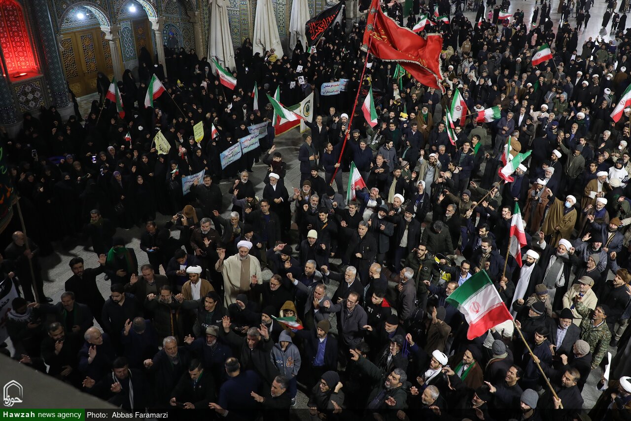 اجتماع خودجوش مــردم و بازاریان قـــم در اعتراض به اغتشاشات اخیر در حرم مطهر حضرت معصومه(س) برگزار شد.