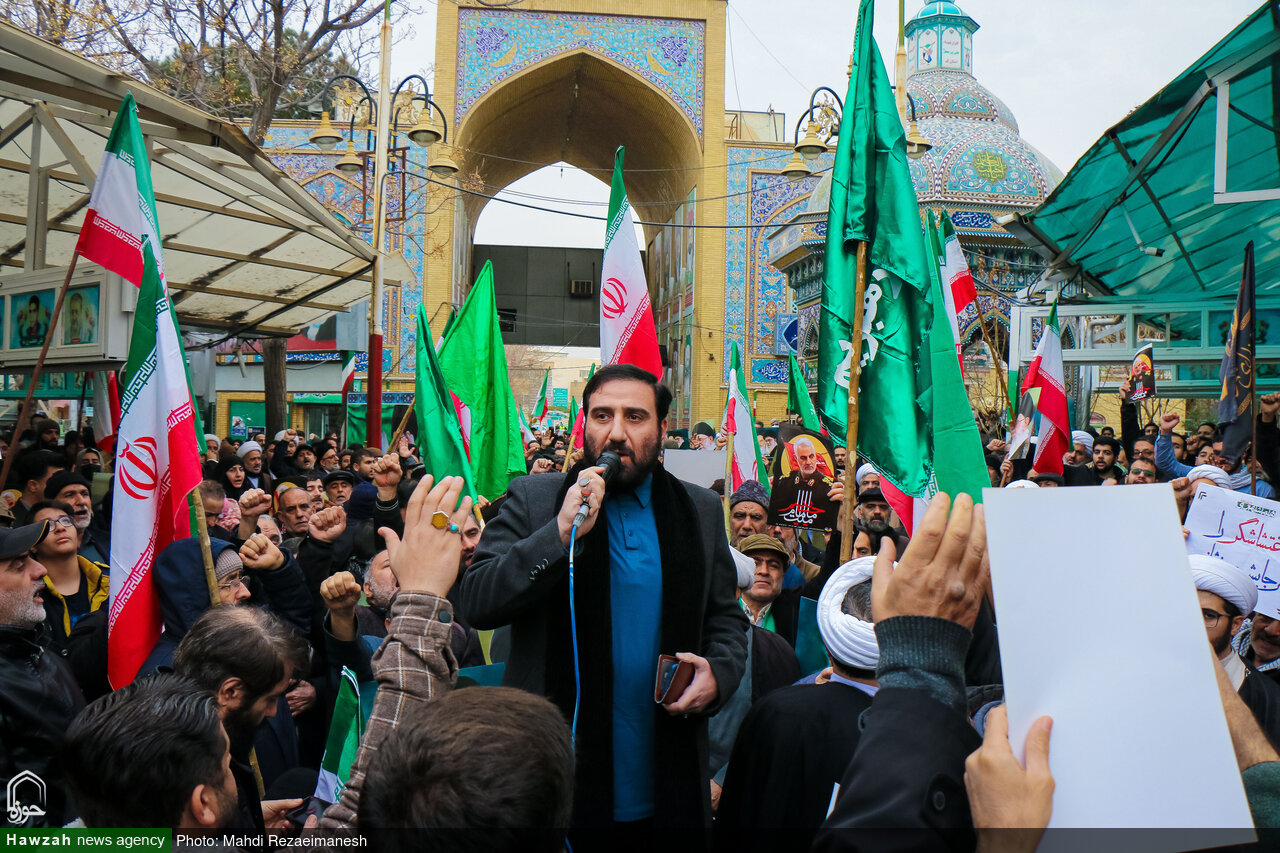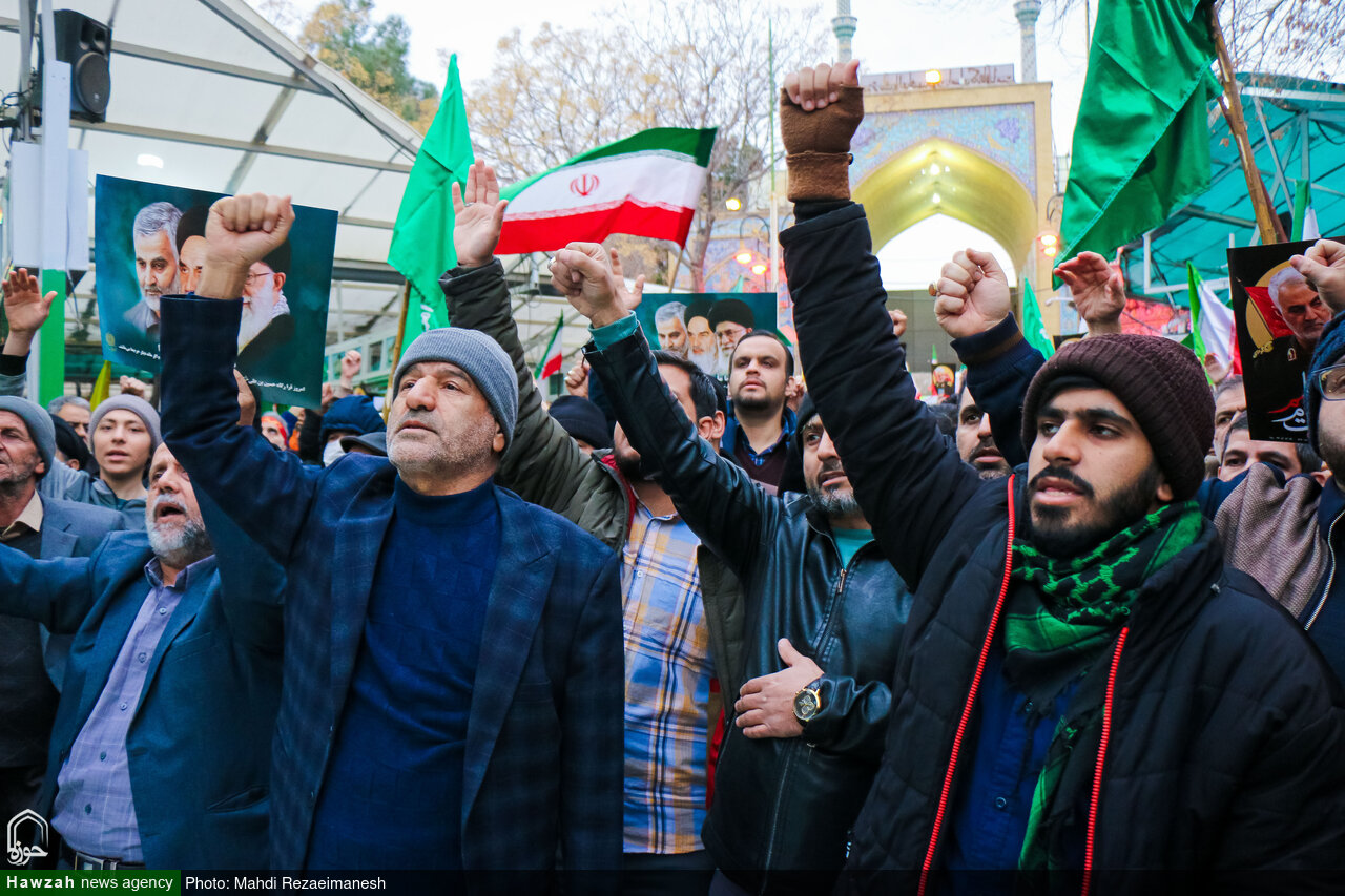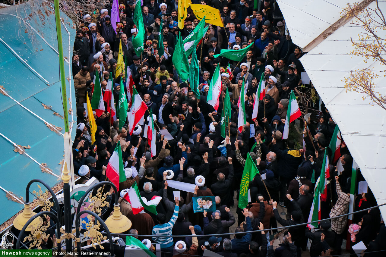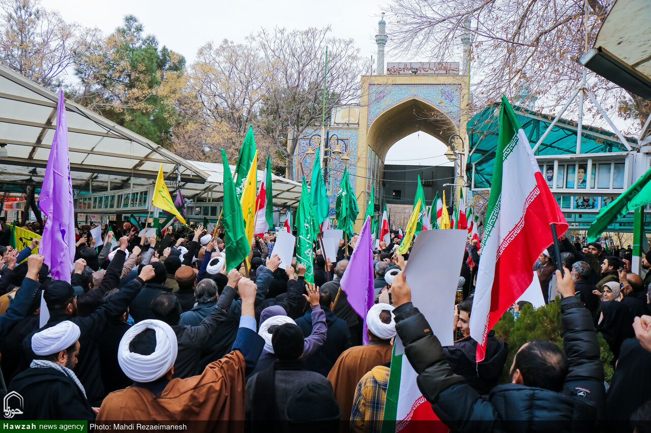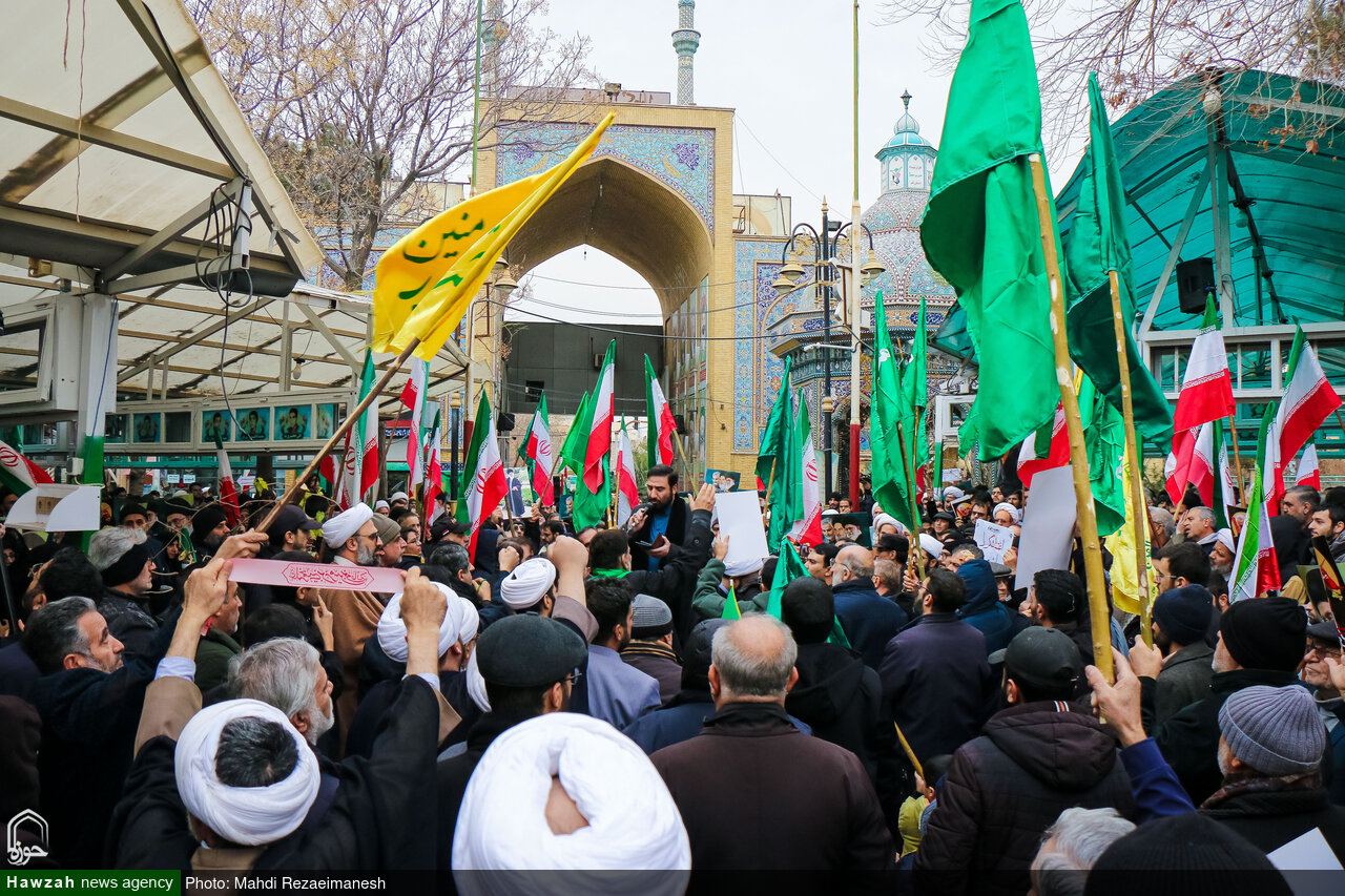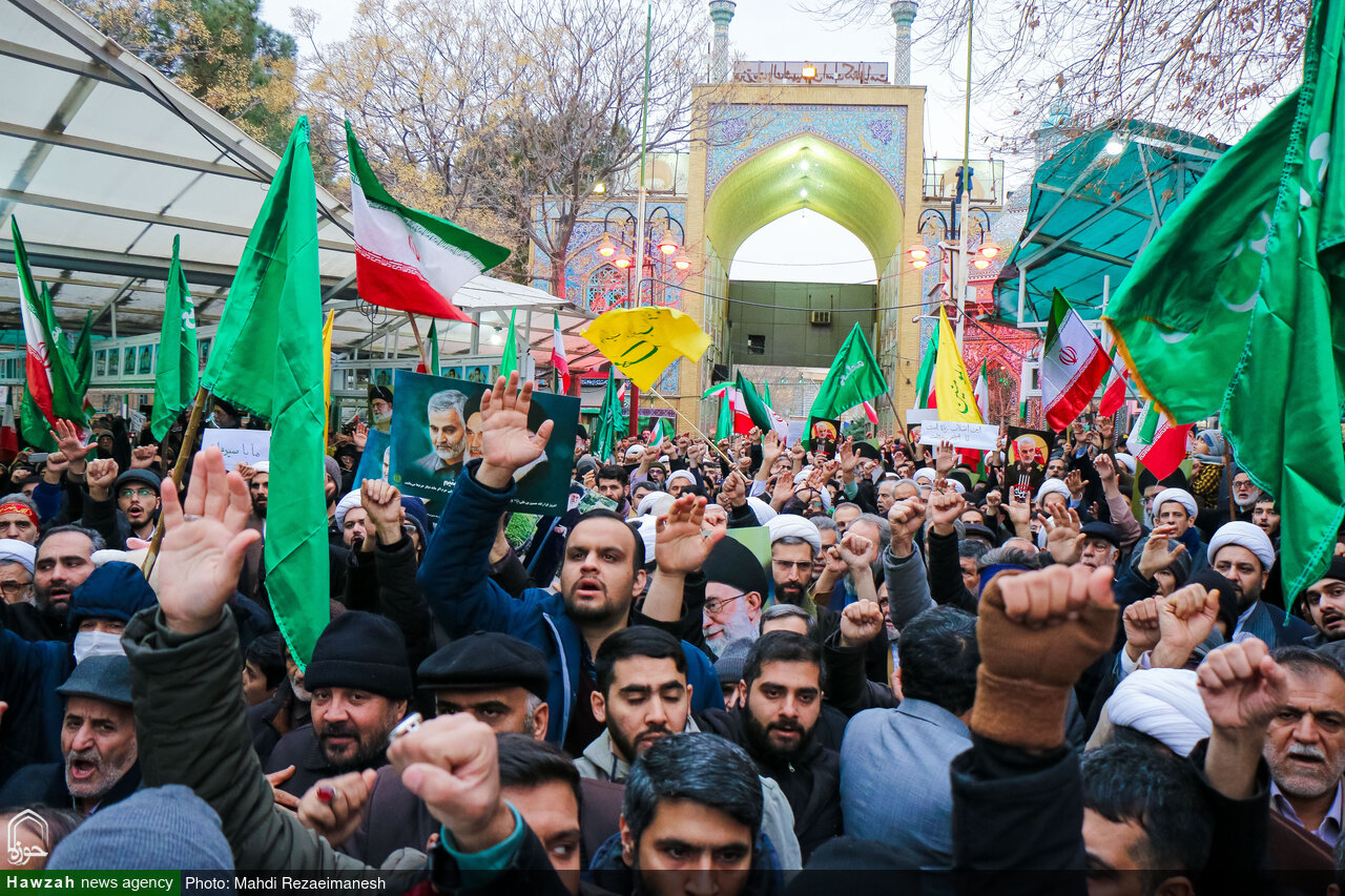 حوزه/ تجمع مدافعان حرم در حمایت از جمهوری اسلامی ایران با حضور پر شور مردم از گلزار شهدا به سمت حرم حضرت موسی مبرقع(ع) قم برگزار شد.