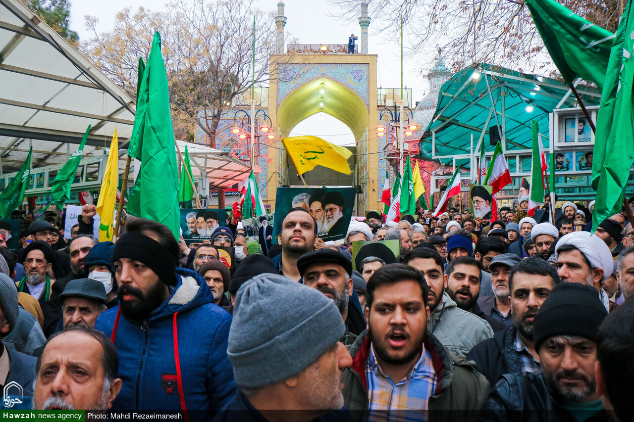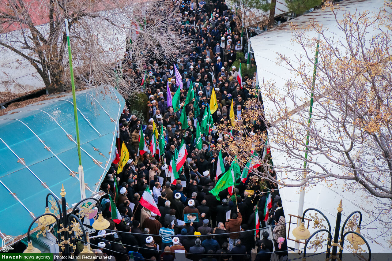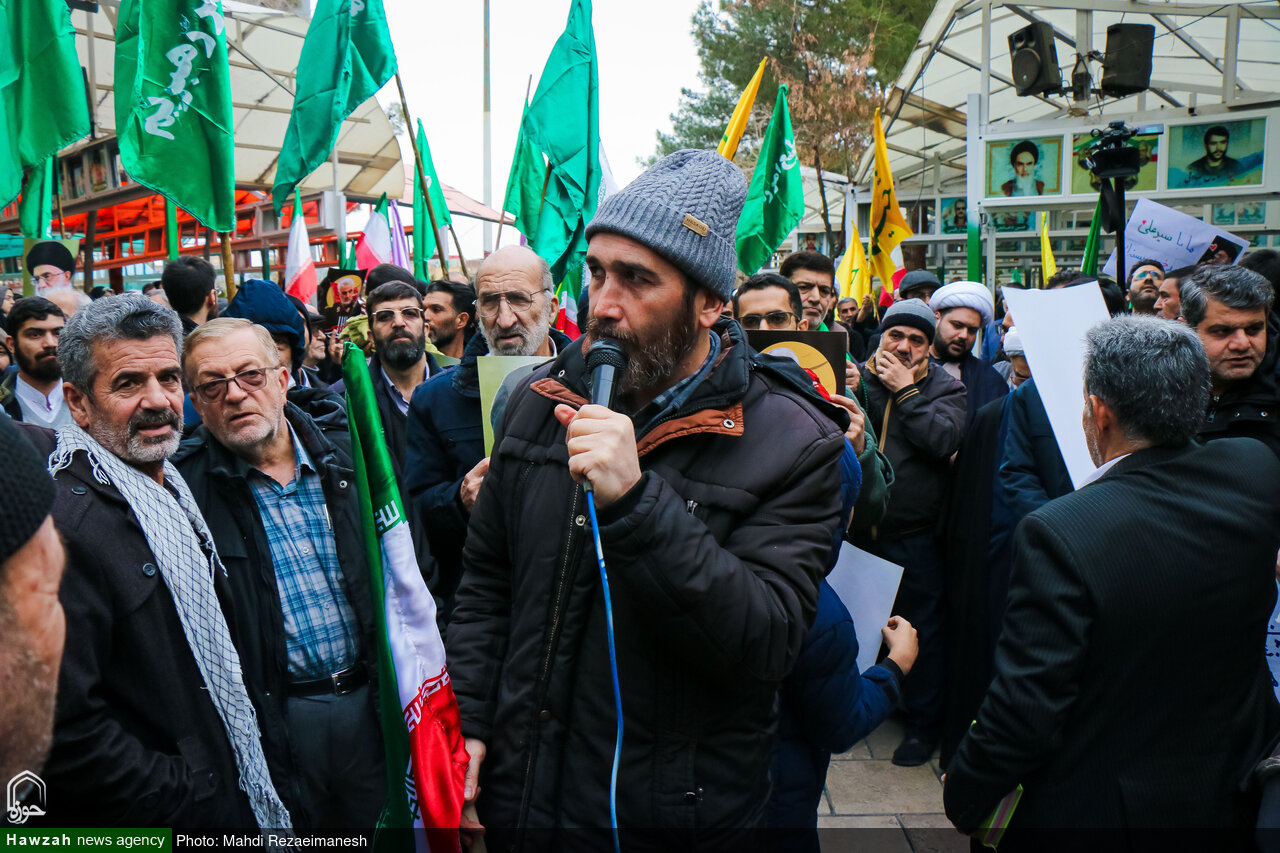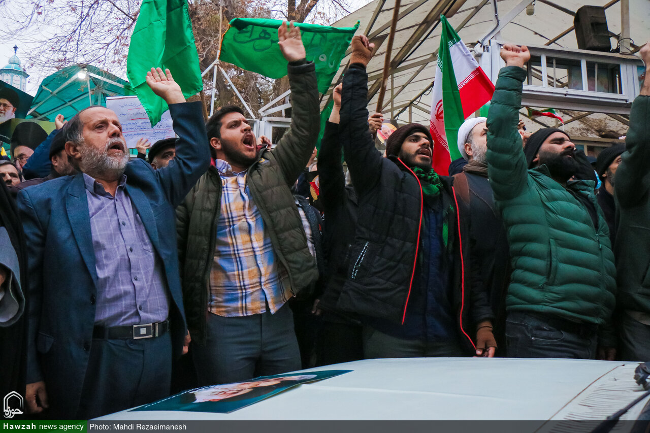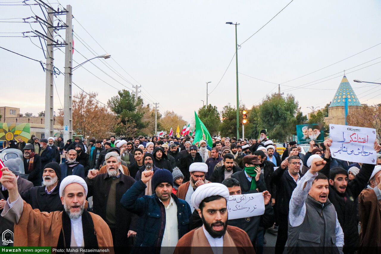 حوزه/ تجمع مدافعان حرم در حمایت از جمهوری اسلامی ایران با حضور پر شور مردم از گلزار شهدا به سمت حرم حضرت موسی مبرقع(ع) قم برگزار شد.