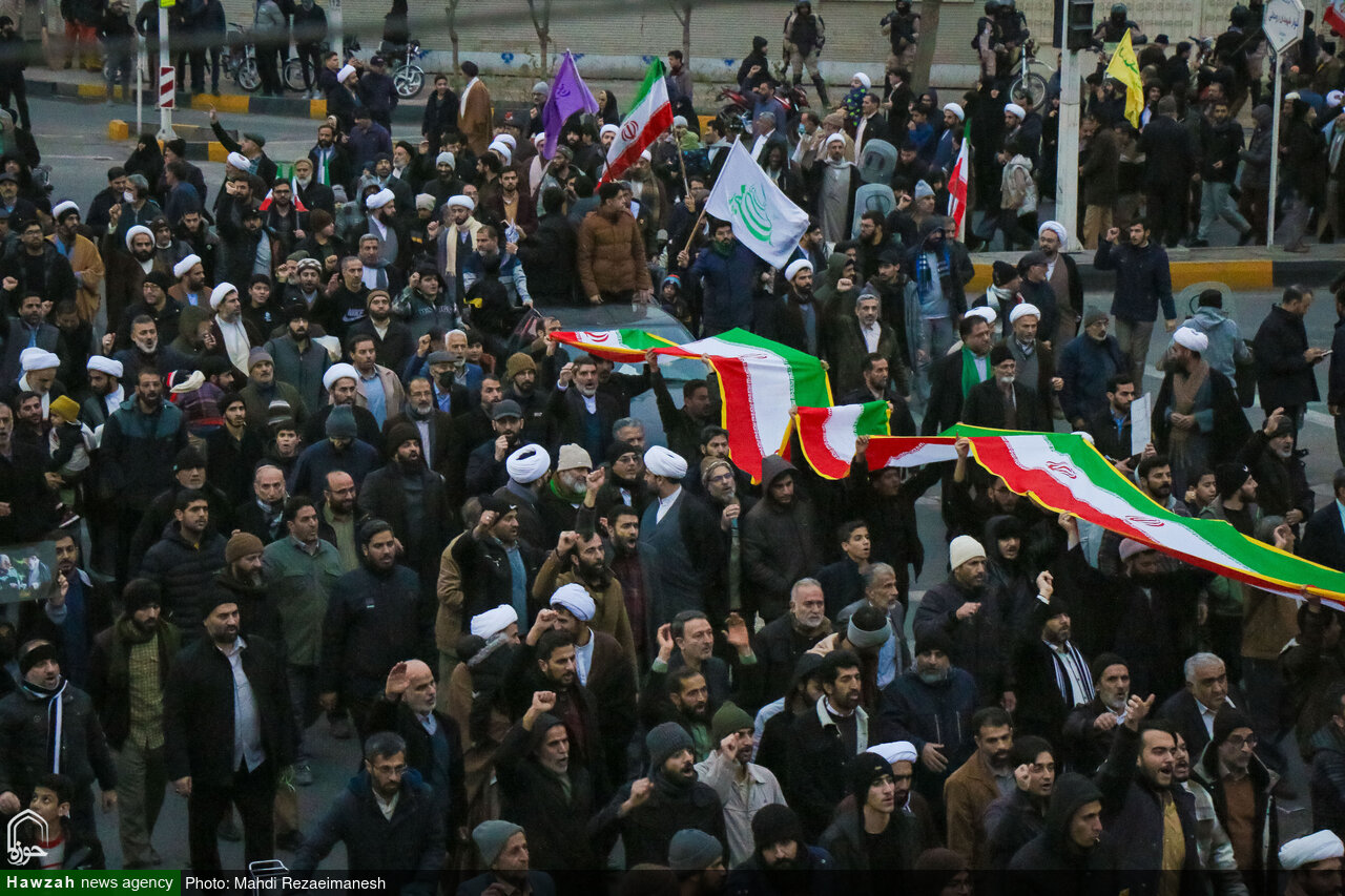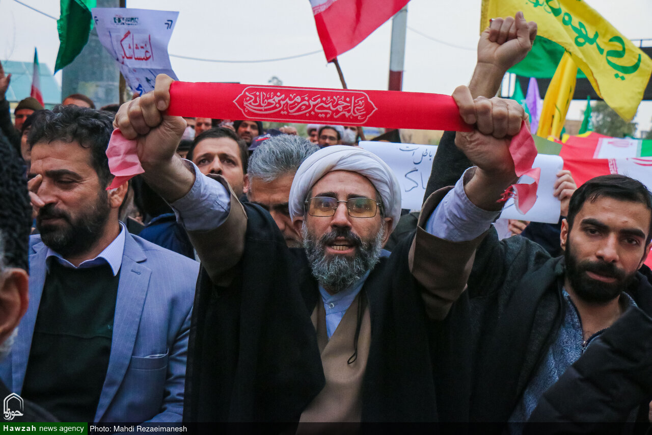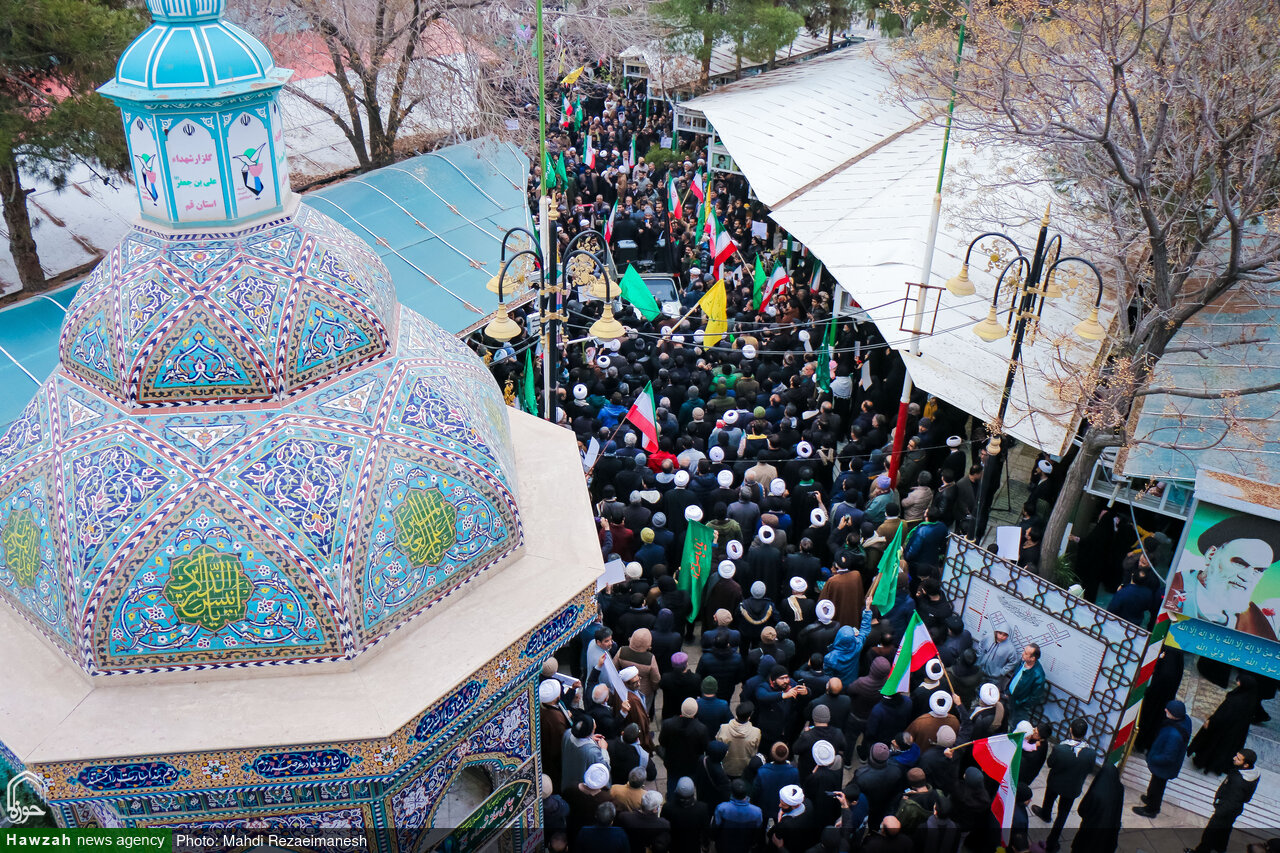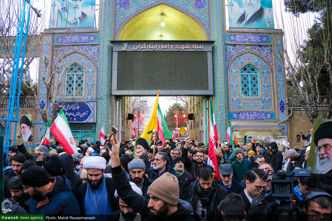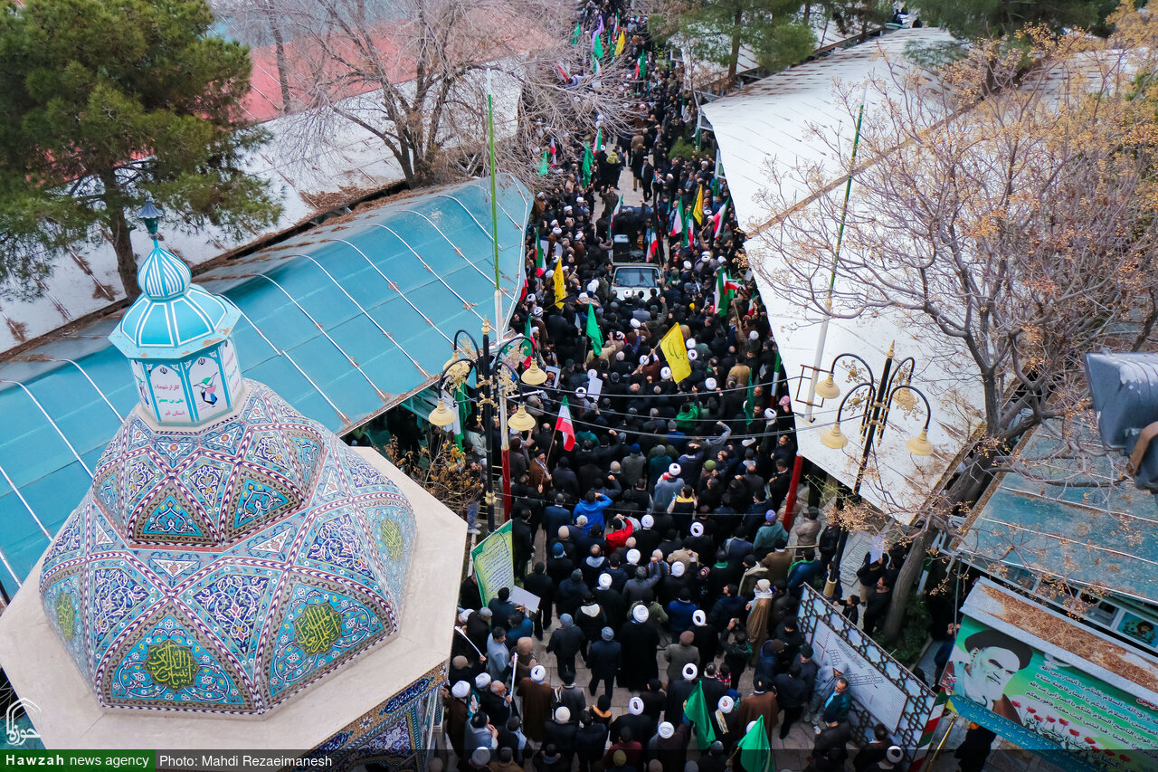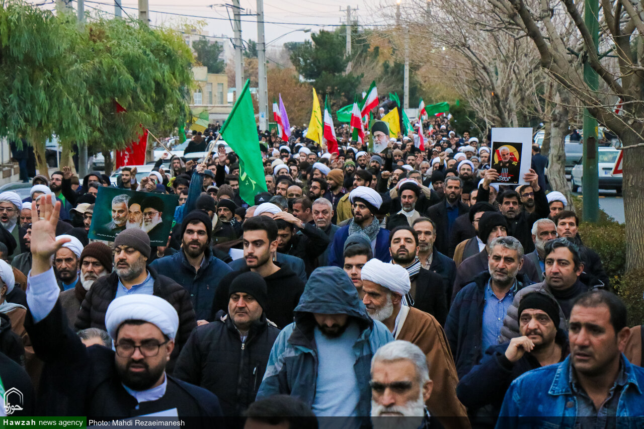 حوزه/ تجمع مدافعان حرم در حمایت از جمهوری اسلامی ایران با حضور پر شور مردم از گلزار شهدا به سمت حرم حضرت موسی مبرقع(ع) قم برگزار شد.