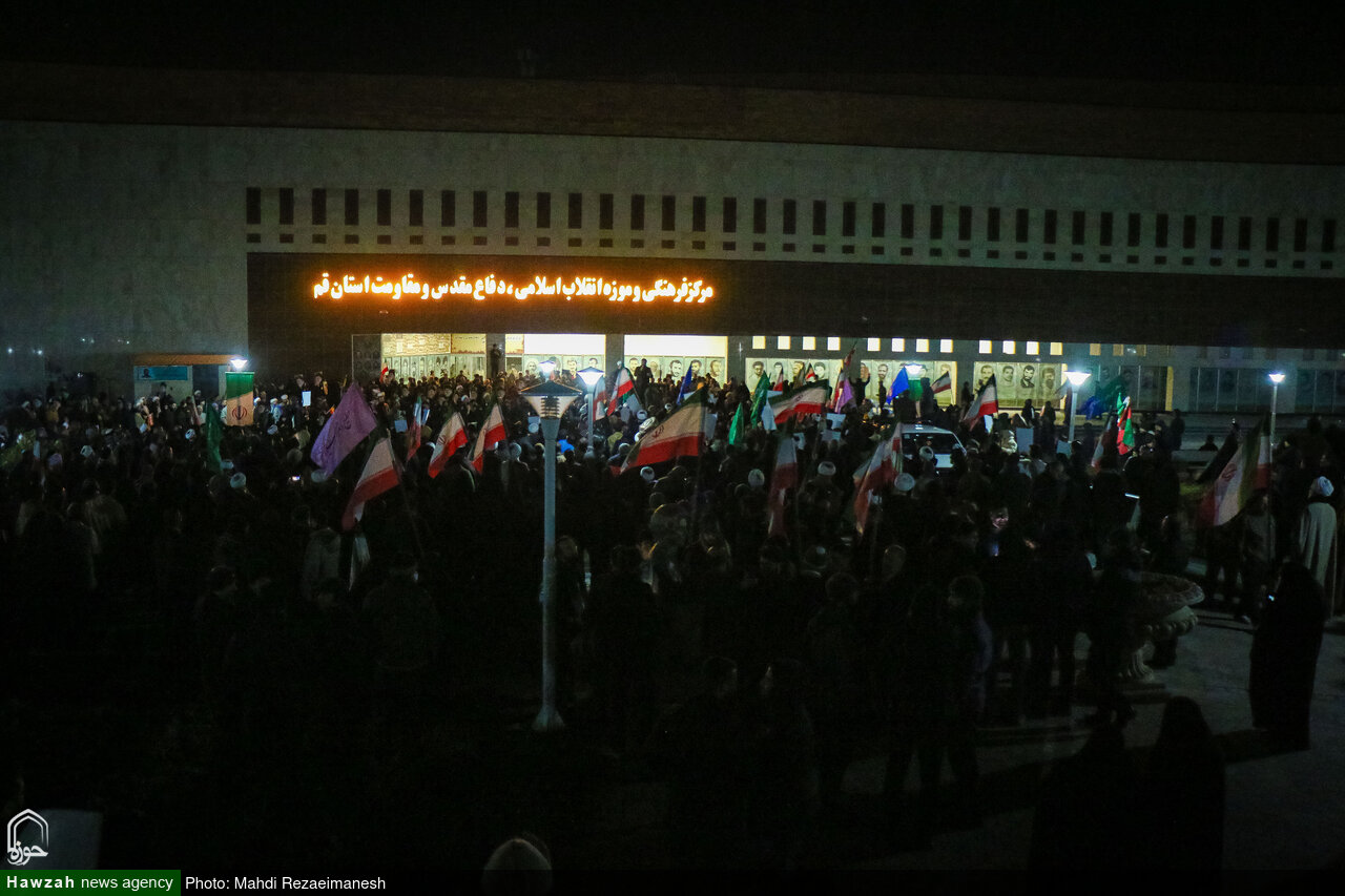 حوزه تجمع و راهپیمایی در حمایت از جمهوری اسلامی ایران با حضور پر شور مردم قم از باغ موزه دفاع مقدس به سمت بلوار شهید صدوقی برگزار شد.