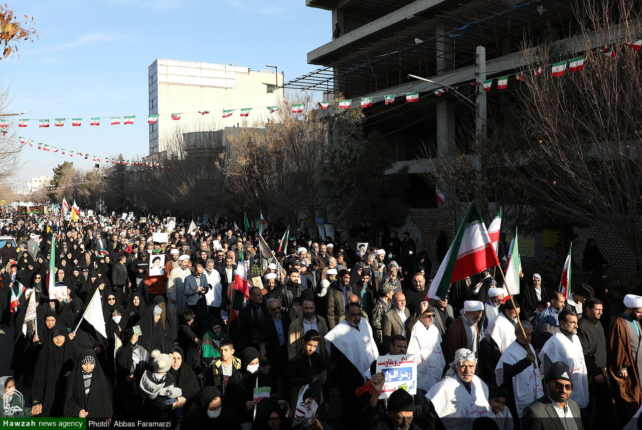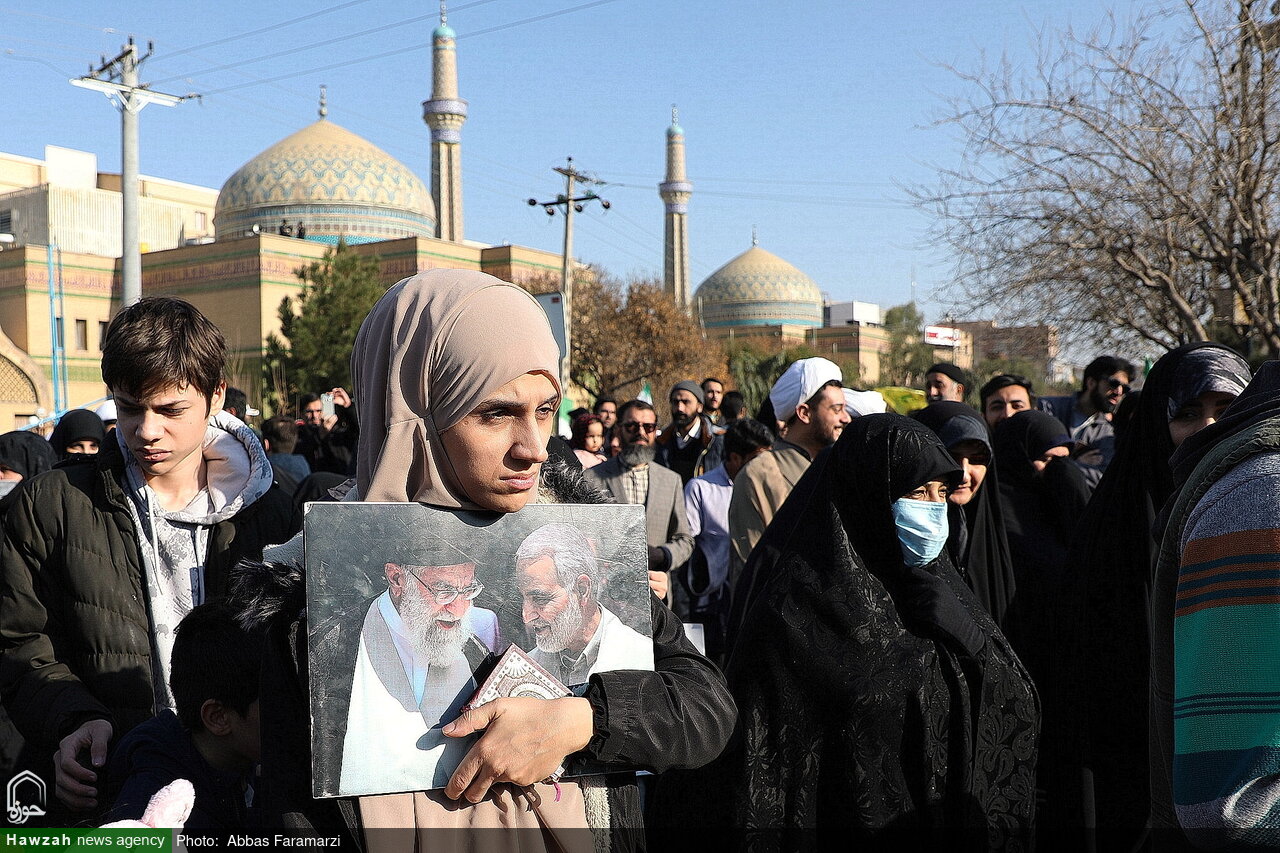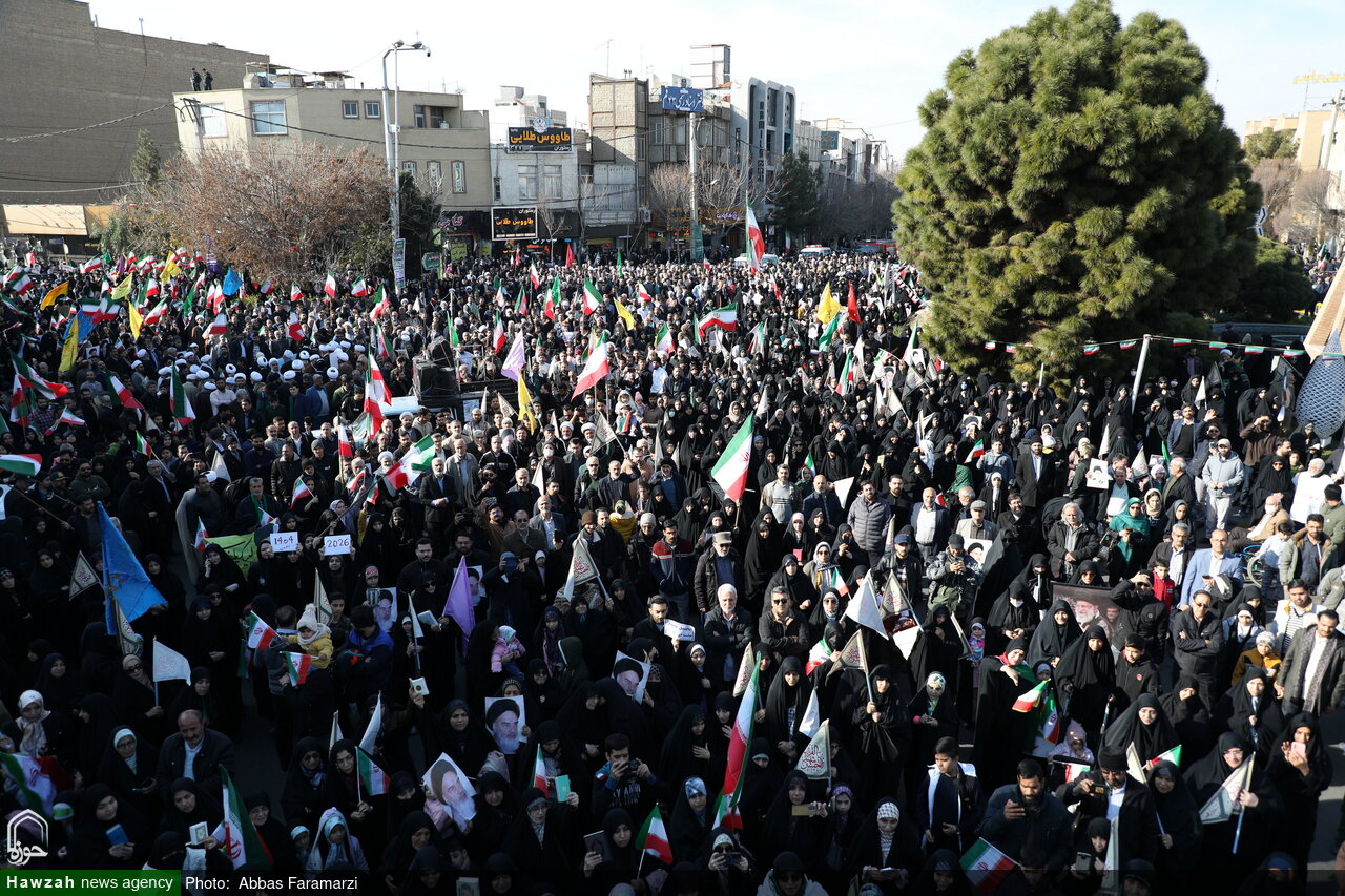 مردم انقلابی و وفادار قم؛ شهر کریمه اهل بیت(س) امروز دوشنبه ۲۲ دی ۱۴۰۴ برای محکومیت فتنه آمریکایی - صهیونی و اعلام خشم و انزجار از جنایات آشوبگران و مخلان امنیت مردم به خیابان آمدند تا به ترامپ جنایتکار و مزدورانش بگویند برای حفظ انقلاب و آرمان های شهدای عزیز حاضرند جان خود را فدا کنند.