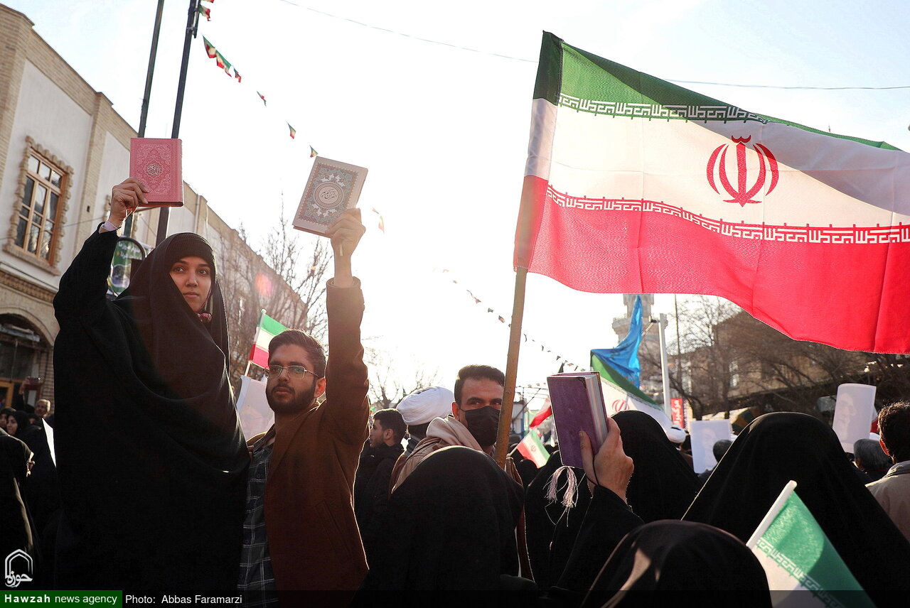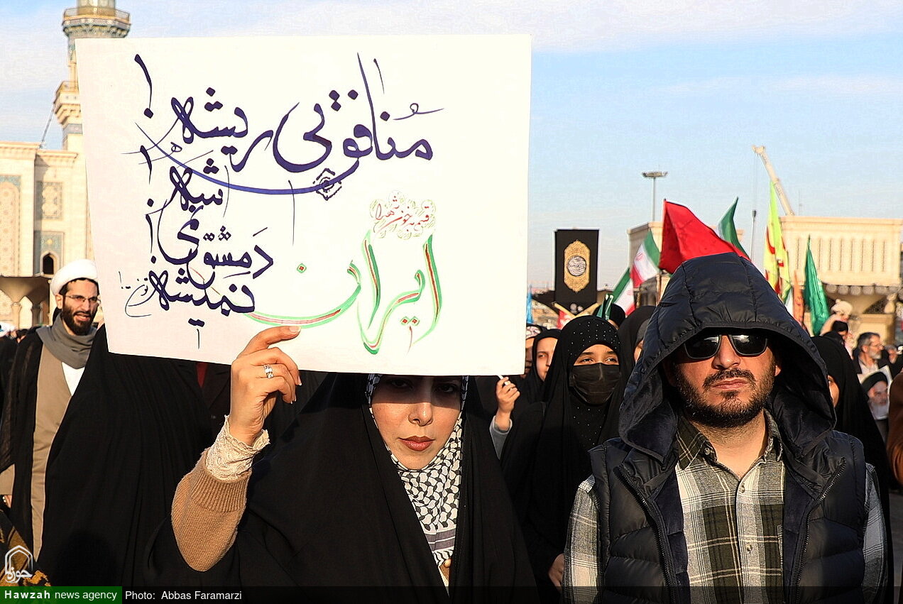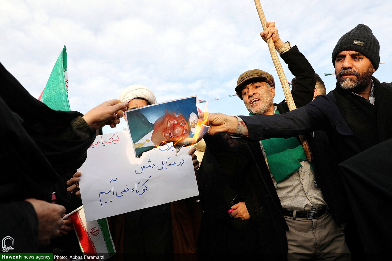 مردم انقلابی و وفادار قم؛ شهر کریمه اهل بیت(س) امروز دوشنبه ۲۲ دی ۱۴۰۴ برای محکومیت فتنه آمریکایی - صهیونی و اعلام خشم و انزجار از جنایات آشوبگران و مخلان امنیت مردم به خیابان آمدند تا به ترامپ جنایتکار و مزدورانش بگویند برای حفظ انقلاب و آرمان های شهدای عزیز حاضرند جان خود را فدا کنند.